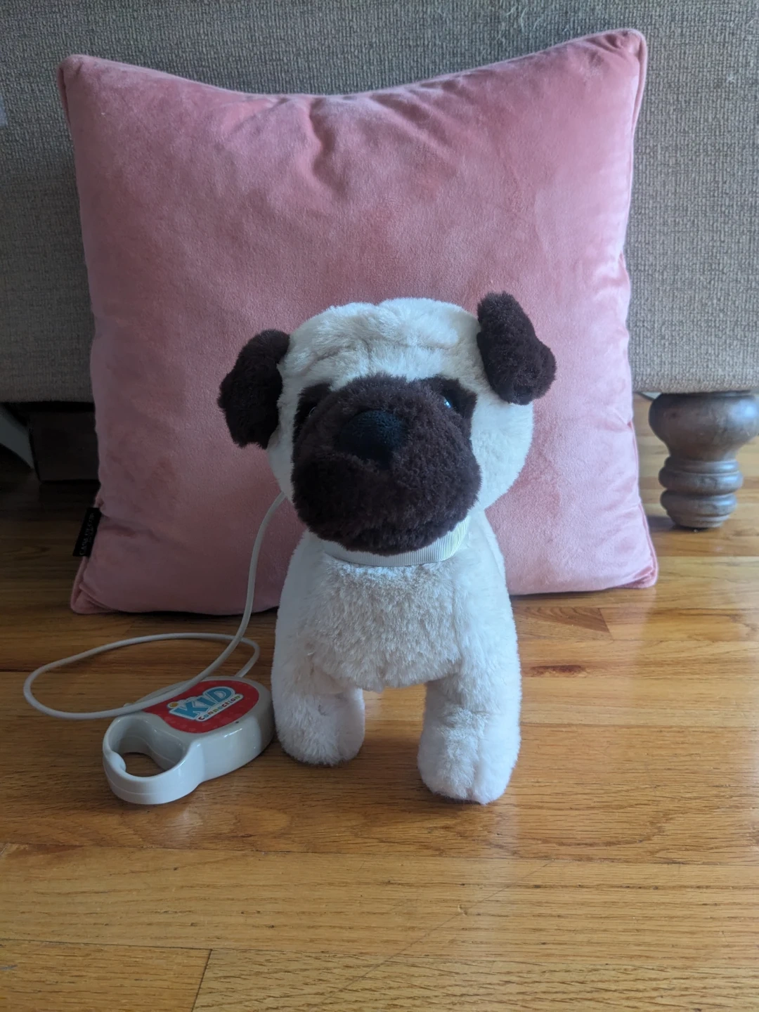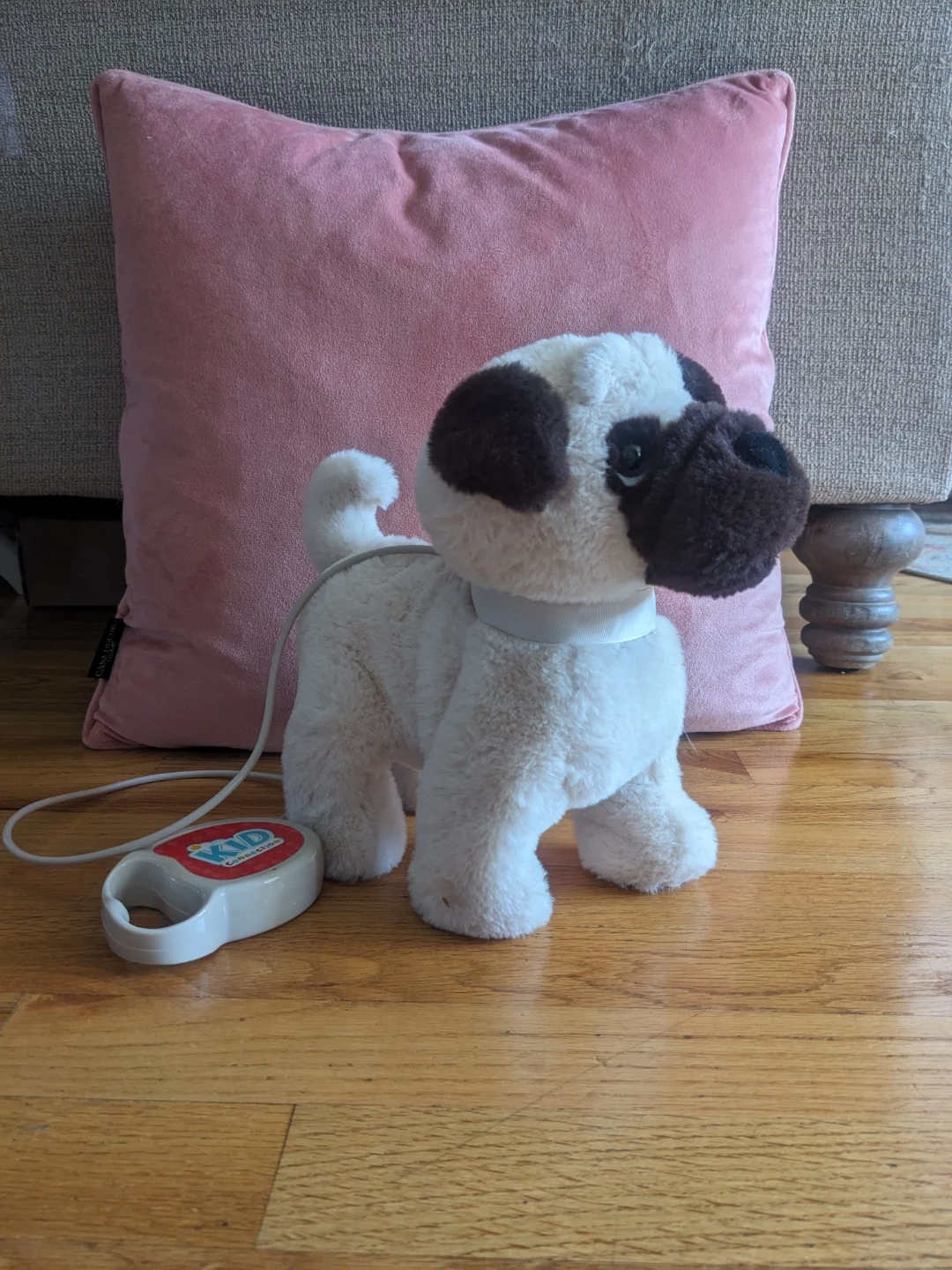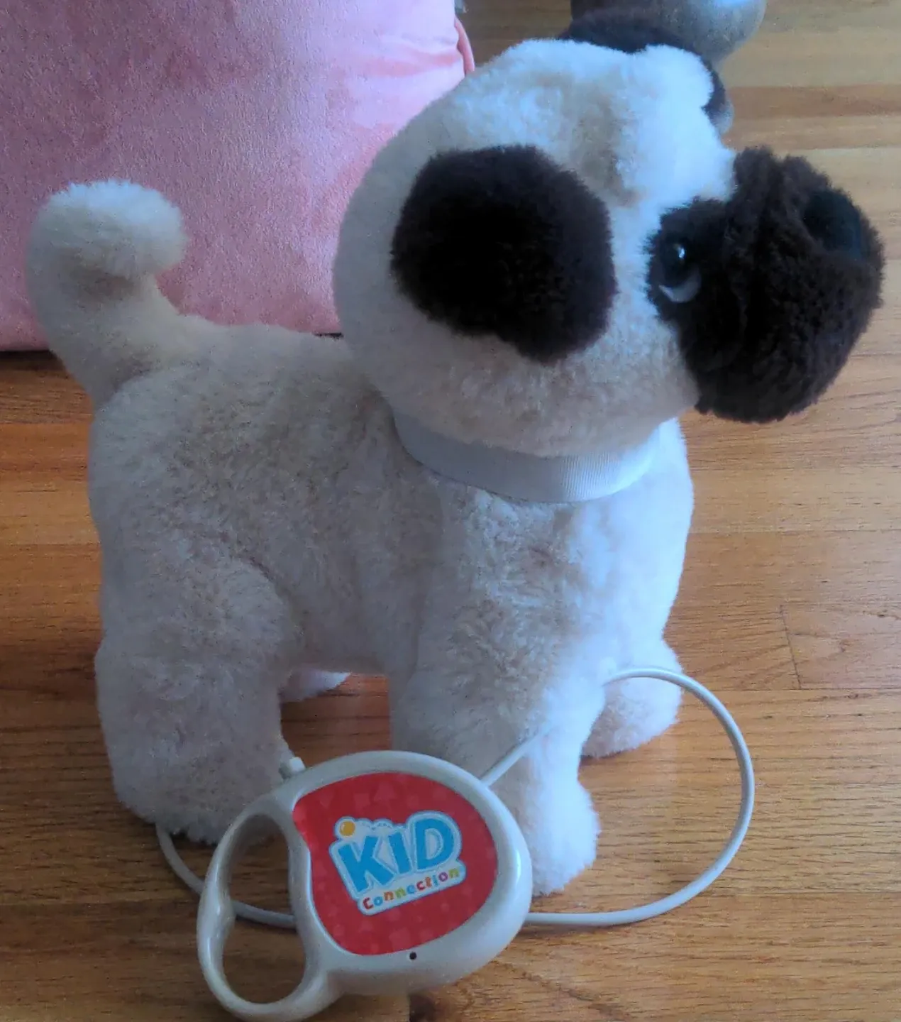This is a Kid Connection plush walking dog! It's in great condition and ready for a new friend. It comes with an attached leash that allows the dog to walk when activated.