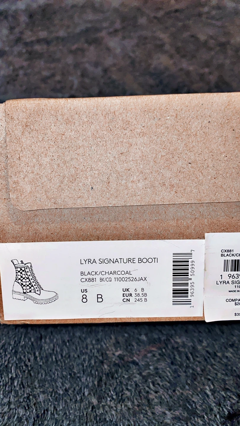 ✨✨brand new with boxes ✨✨✨Selling a pair of Coach Lyra Signature Booties in size 8. They are black/charcoal colour. Comes with the original box!