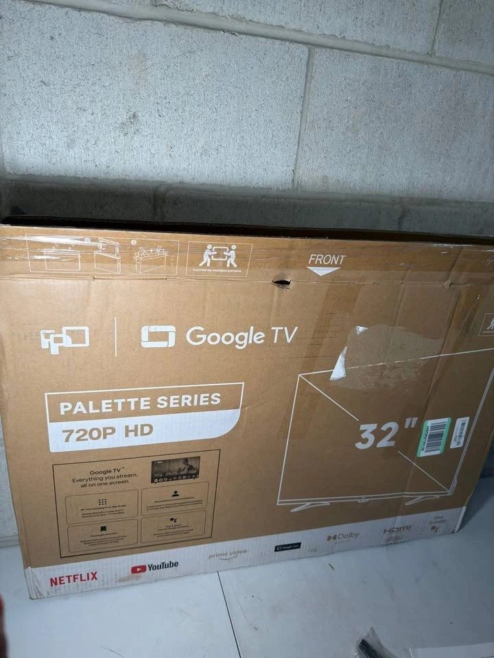 A 32" HD (720p) Google TV designed for effortless streaming and smart home convenience. Enjoy vibrant LED visuals, HDR10 support, and immersive Dolby Audio. With built-in Google TV, Google Cast, Bluetooth, Game Mode, and voice control via Google Assistant, it delivers easy navigation and personalized entertainment. Includes remote, stand, and batteries for quick setup.