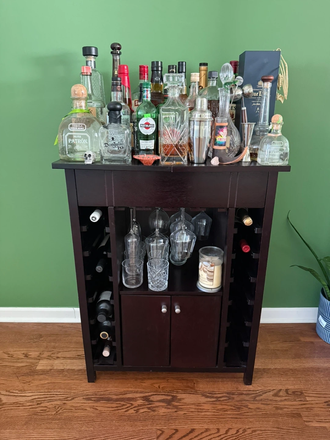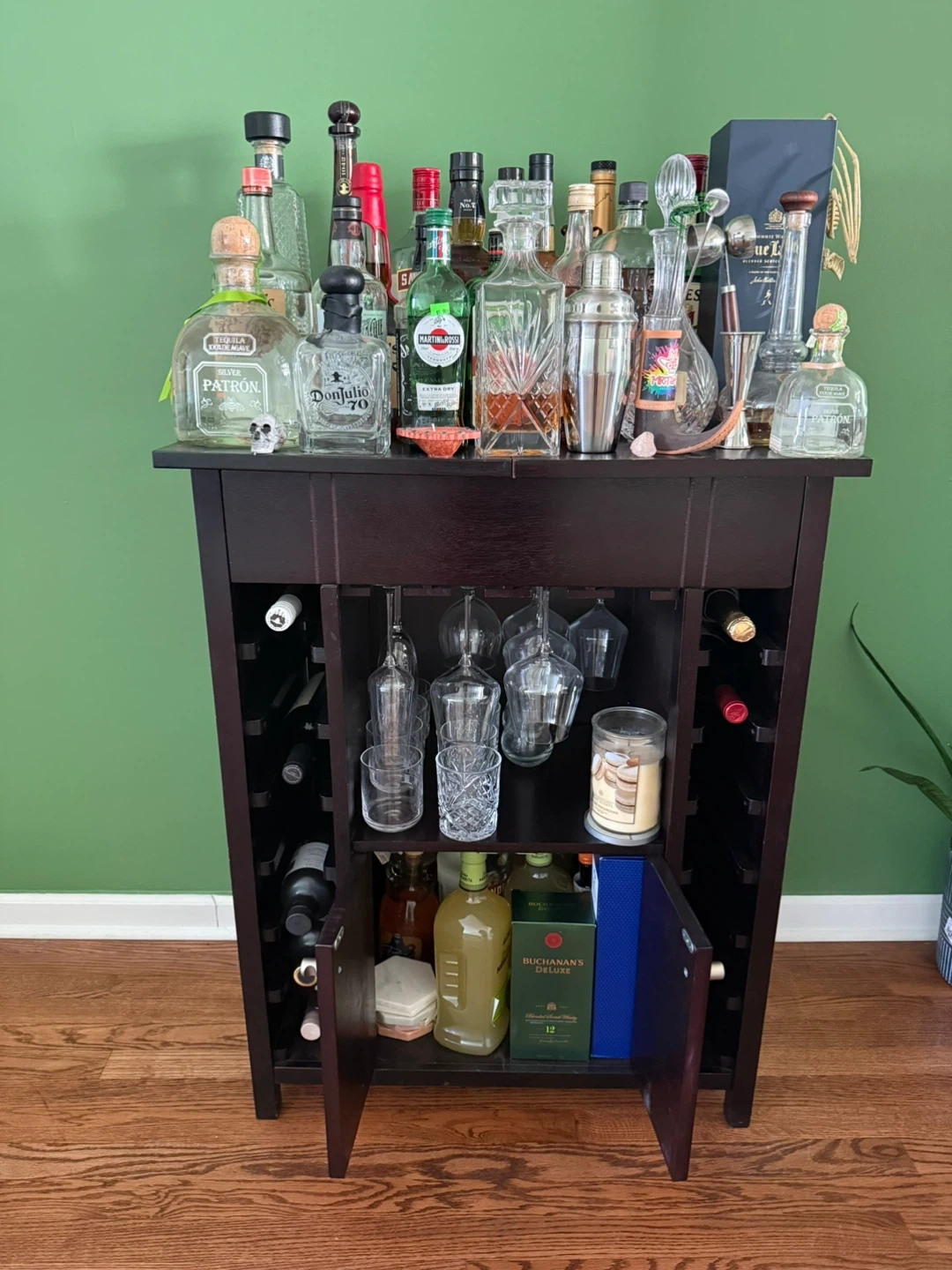 Selling a bar cabinet with a built-in wine rack. It's perfect for storing your favorite spirits and wines. The cabinet is in great condition and ready to add some style to your home!
