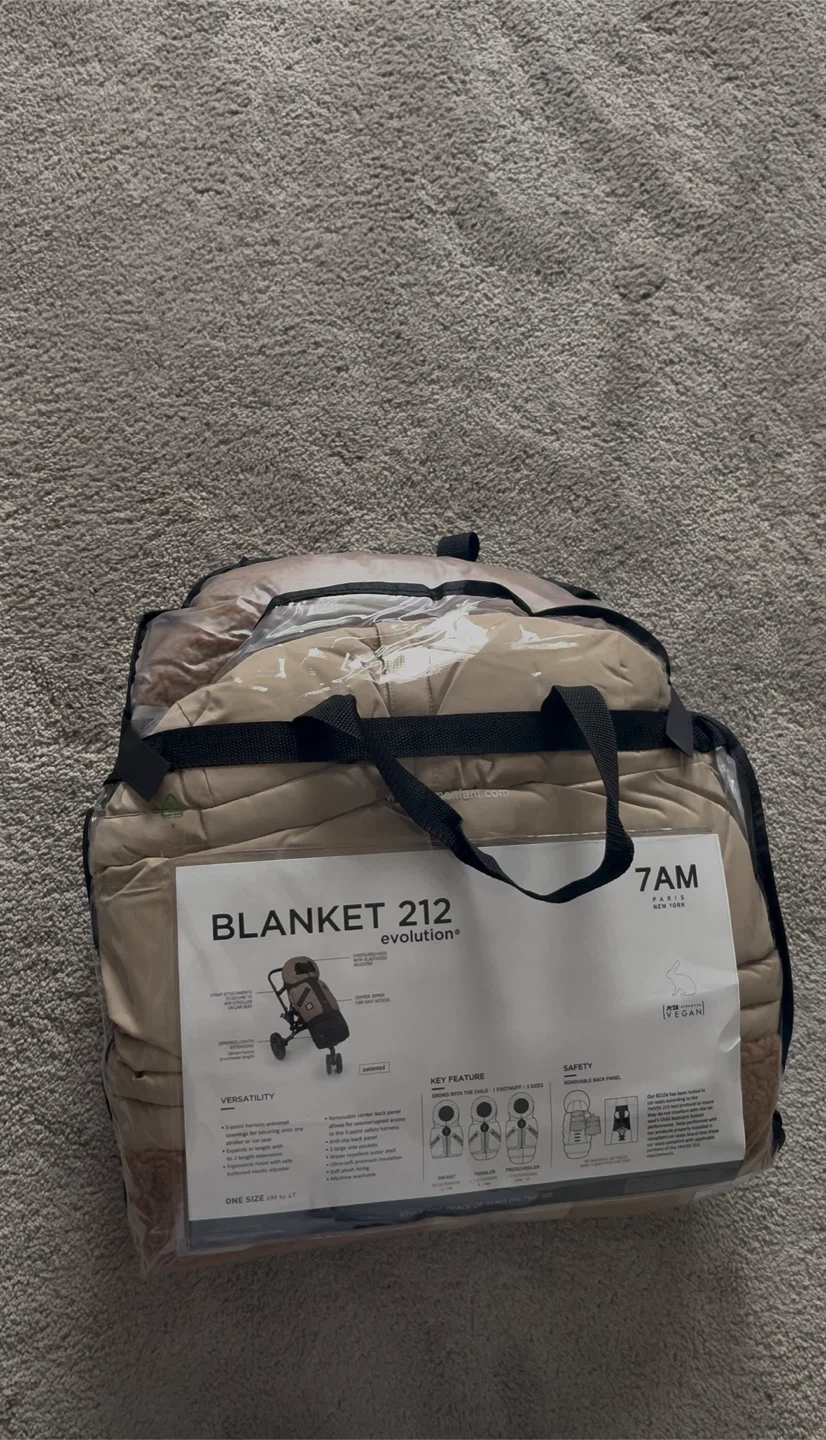 Keep your little one cozy with this 7AM Enfant Blanket 212 Evolution in cappuccino! This versatile blanket is designed to fit strollers, car seats, and more. It also grows with your baby all the way till 4T! Originally bought for $325.99. You can also purchase the matching Warmmuffs for 50$.