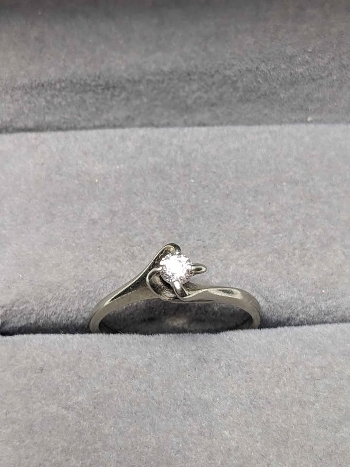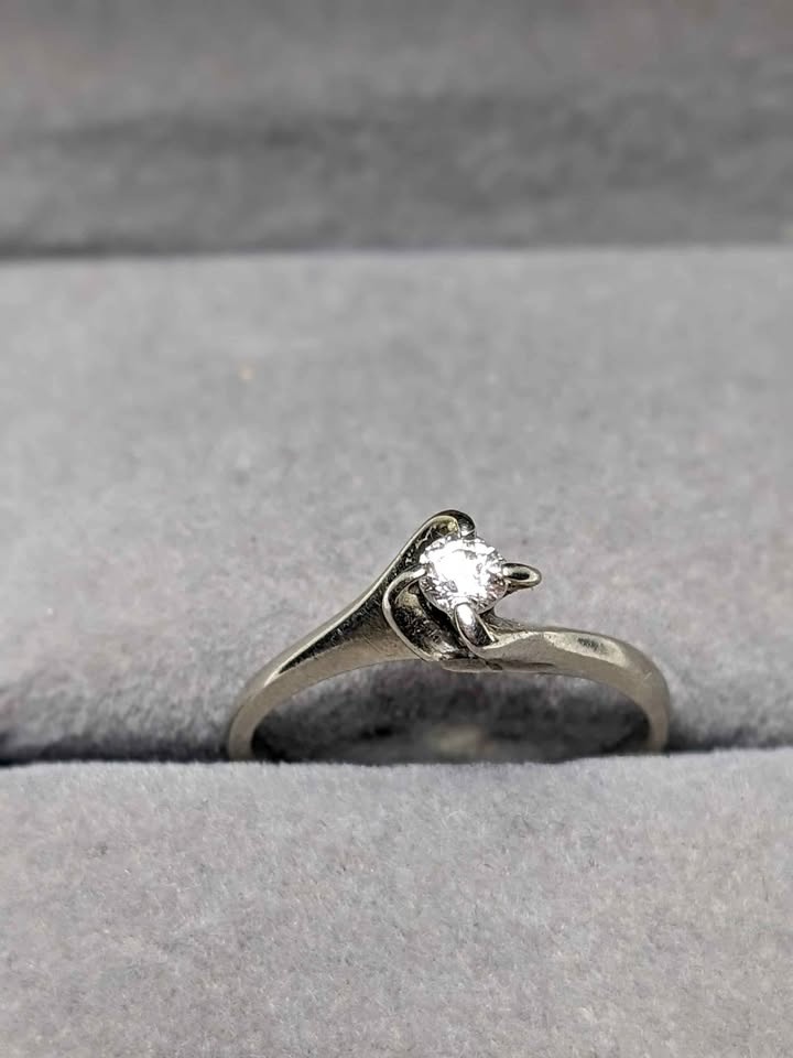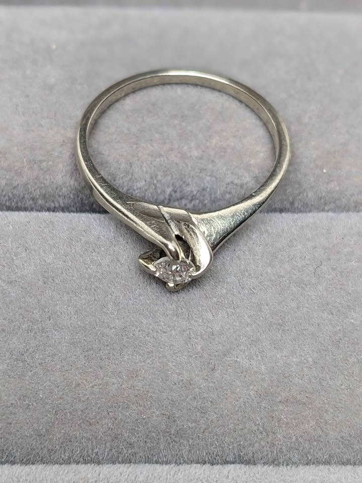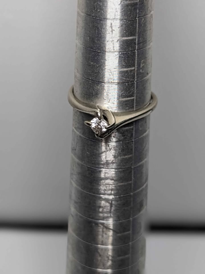 14k White Gold Solitaire Ring 0.16ct Diamond Vintage Size 6