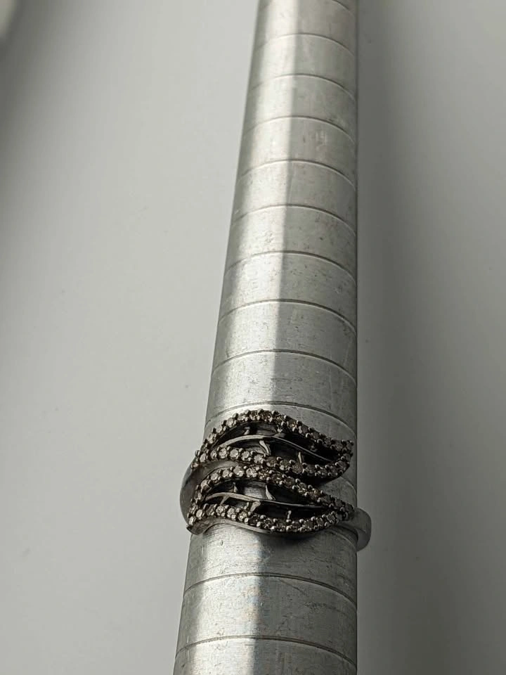 Diamond Ring Black Rhodium Plated 925 Silver 3.25g 0.4ct Leaf De