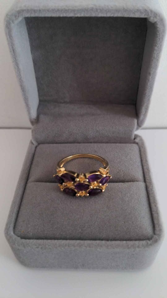 Sterling Silver Amethyst & Citrine Ring Size 7.5 New
