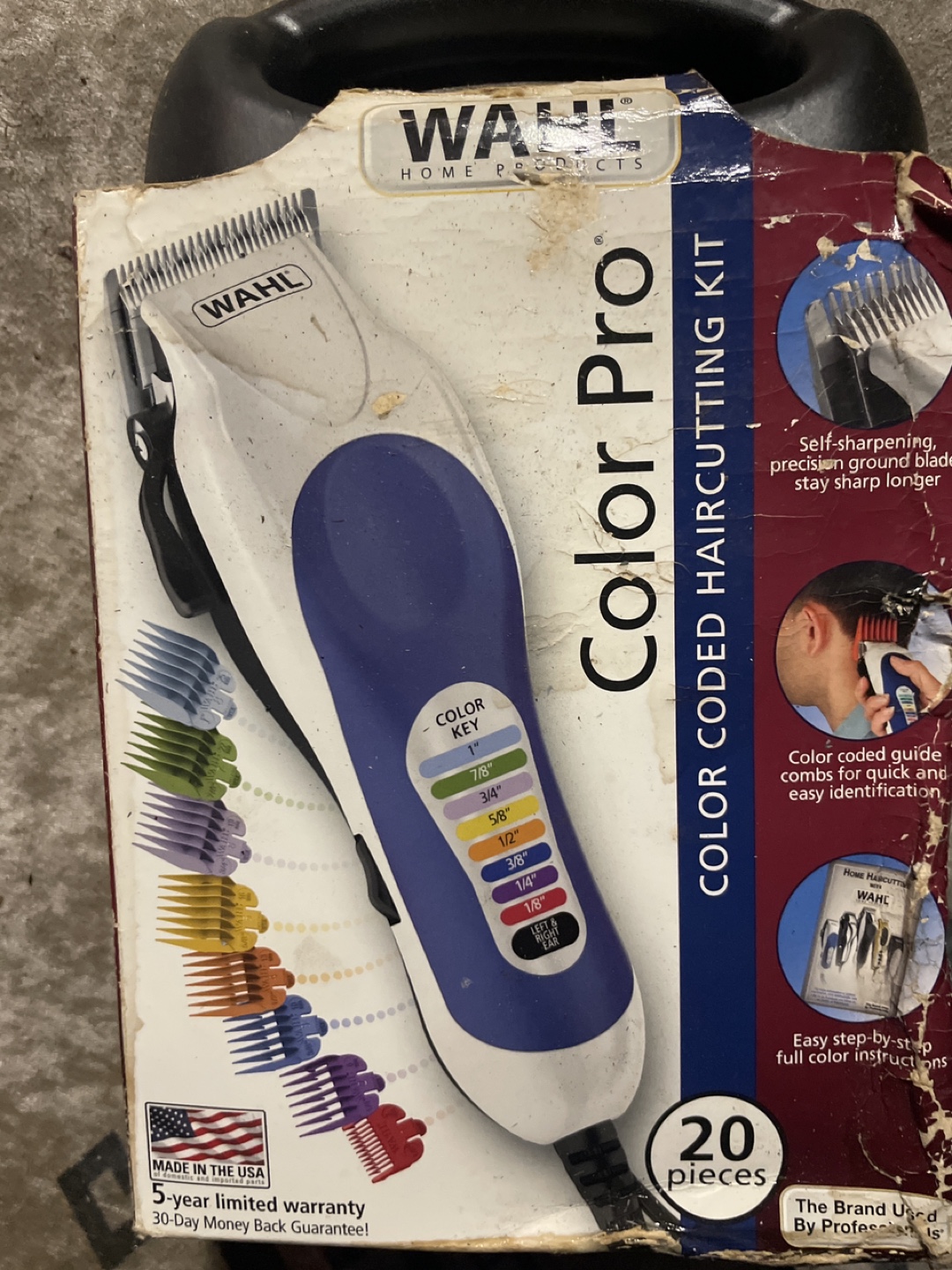 Selling a Wahl Color Pro Haircutting Kit! This kit comes with 20 pieces to make home haircuts easy. The color-coded guide combs make it easy to select the correct comb for the right setting. It also includes easy step-by-step full color instructions. The self-sharpening, precision ground blades stay sharp longer