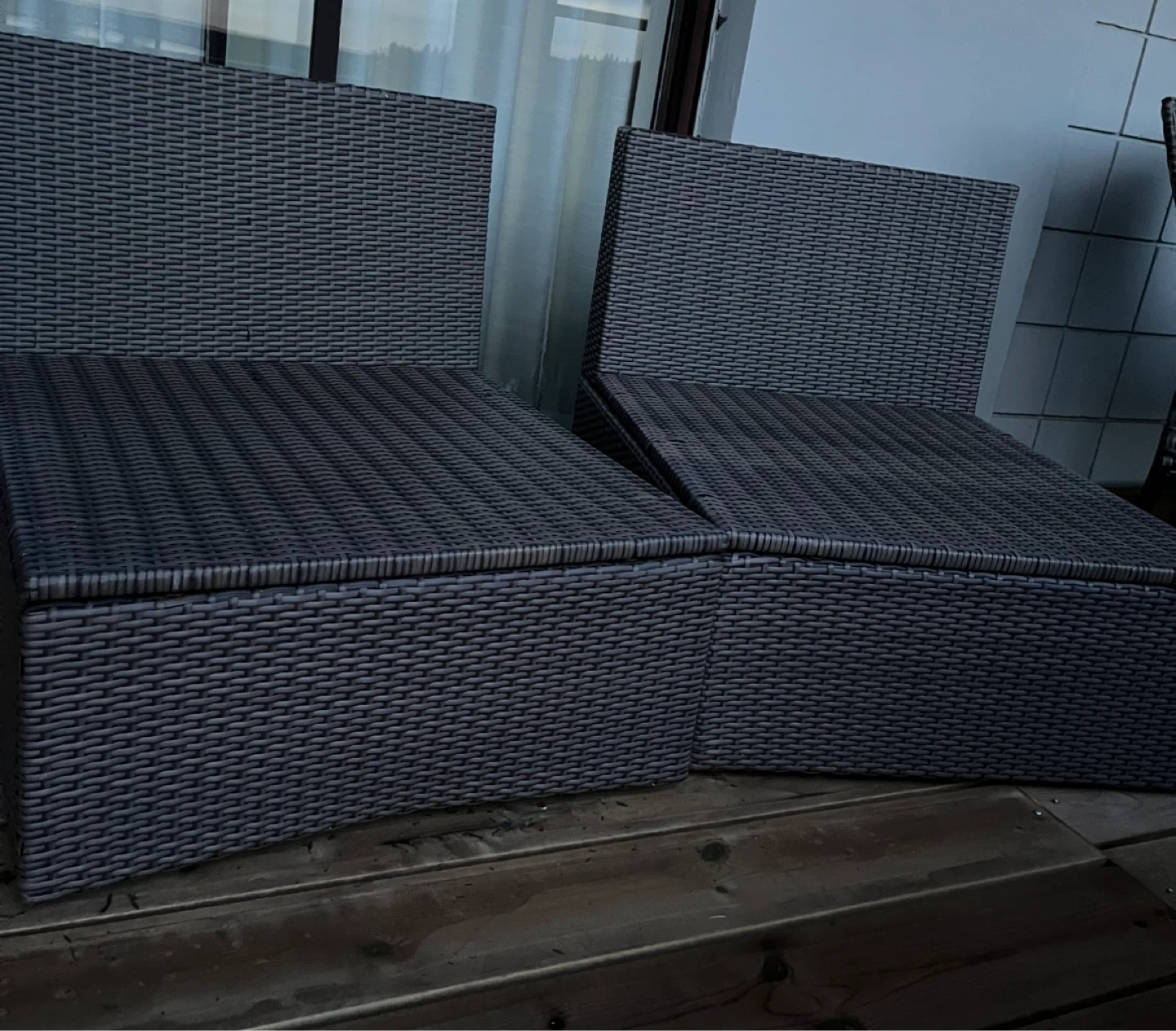 Selling a set of two wicker outdoor patio chairs. They're perfect for relaxing on your deck or patio. The chairs are in great condition and ready to enjoy - just missing two pillows
