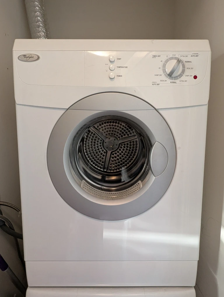 Selling electric stainless steel drum Whirlpool compact dryer, model YWED7500VW. It's in great working condition and perfect for smaller spaces! Washer broke so both wash machines needed to be replaced. #Cleanout