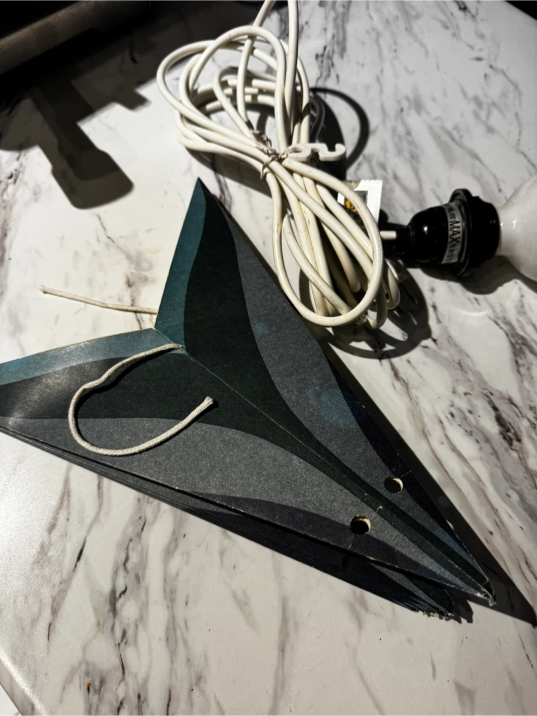 #cleanout Paper Star Lamp with corded light bulb