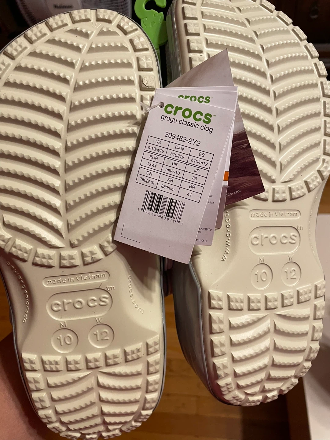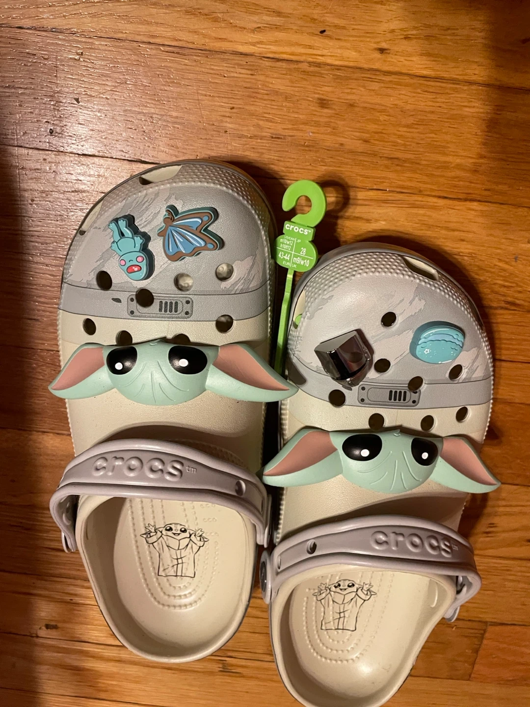 Selling a pair of Crocs Grogu Classic Clogs in size M10/W12. They feature a fun Grogu design and are in great condition. Size US/CAN m10/w12, EUR 43-44, UK h10/12, JP 28, and m9/w10.