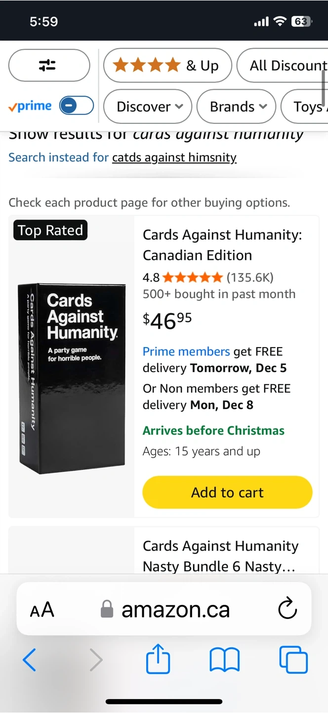 Selling a Cards Against Humanity: Canadian Edition game! It's a party game for horrible people, perfect for a fun night with friends and family.