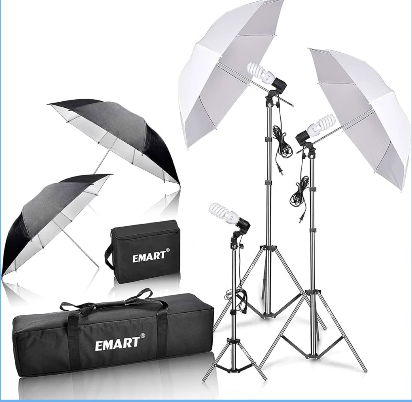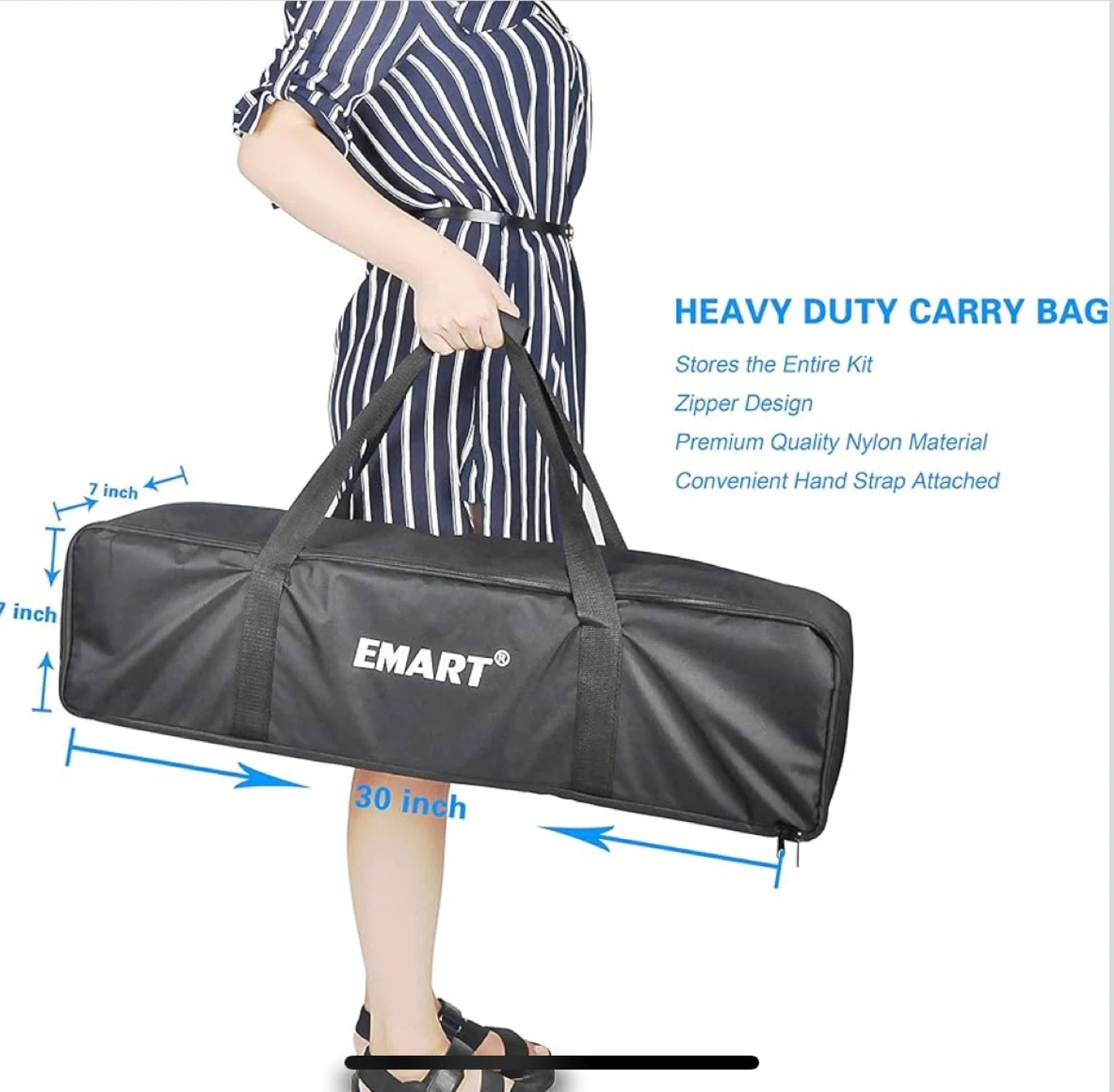 I'm selling an EMART photography studio lighting kit. It's in new condition and includes the heavy-duty carry bag for easy storage and transport. The bag is made of premium quality nylon material and features a convenient hand strap. The bag is approximately 30 inches long, 7 inches wide and 7 inches tall. Come with all the accessories.