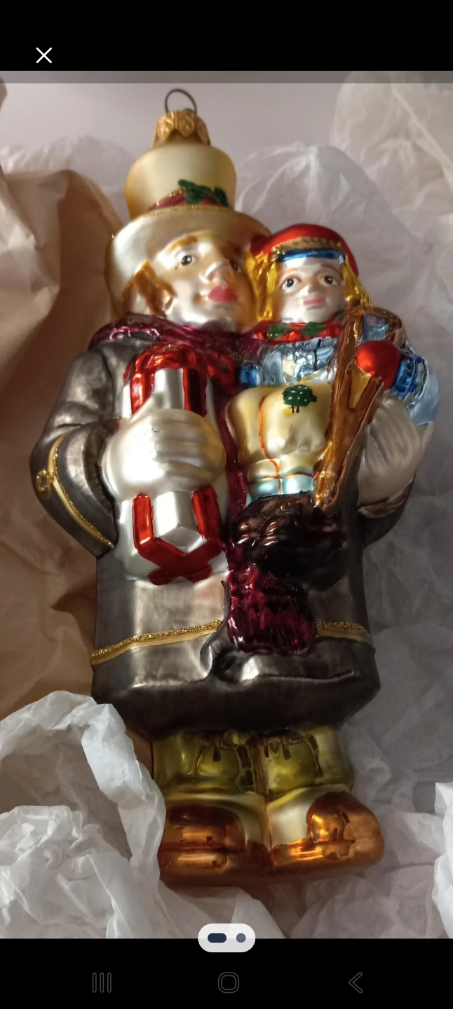 Selling a vintage glass Christmas ornament! Bob Cratchit and Tiny Tim by Kurt Adler