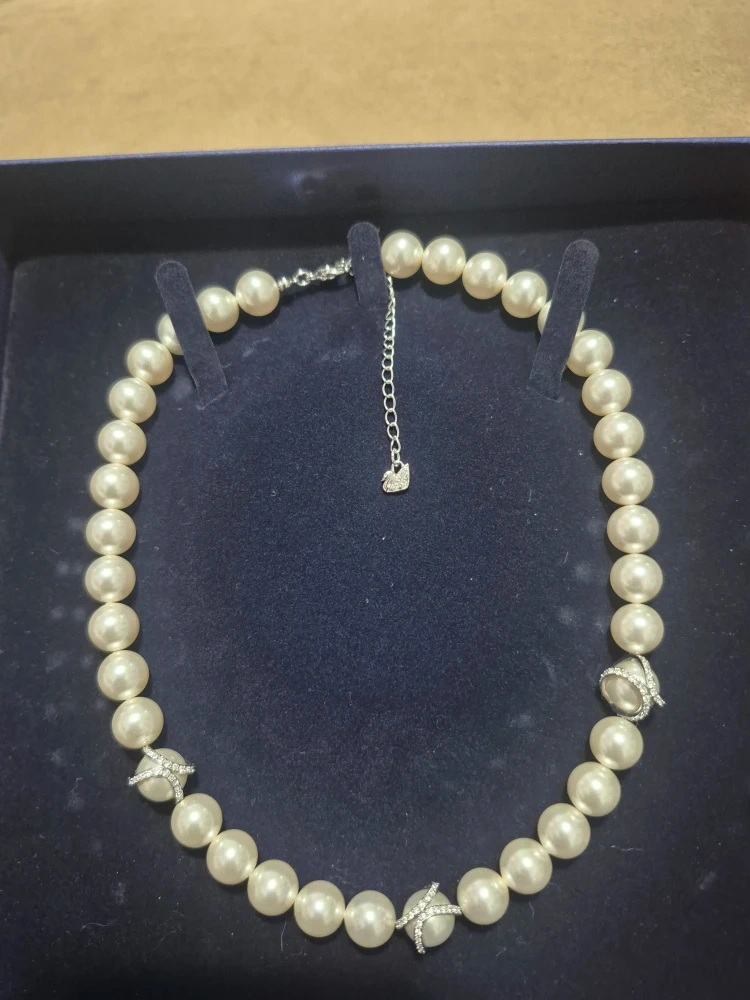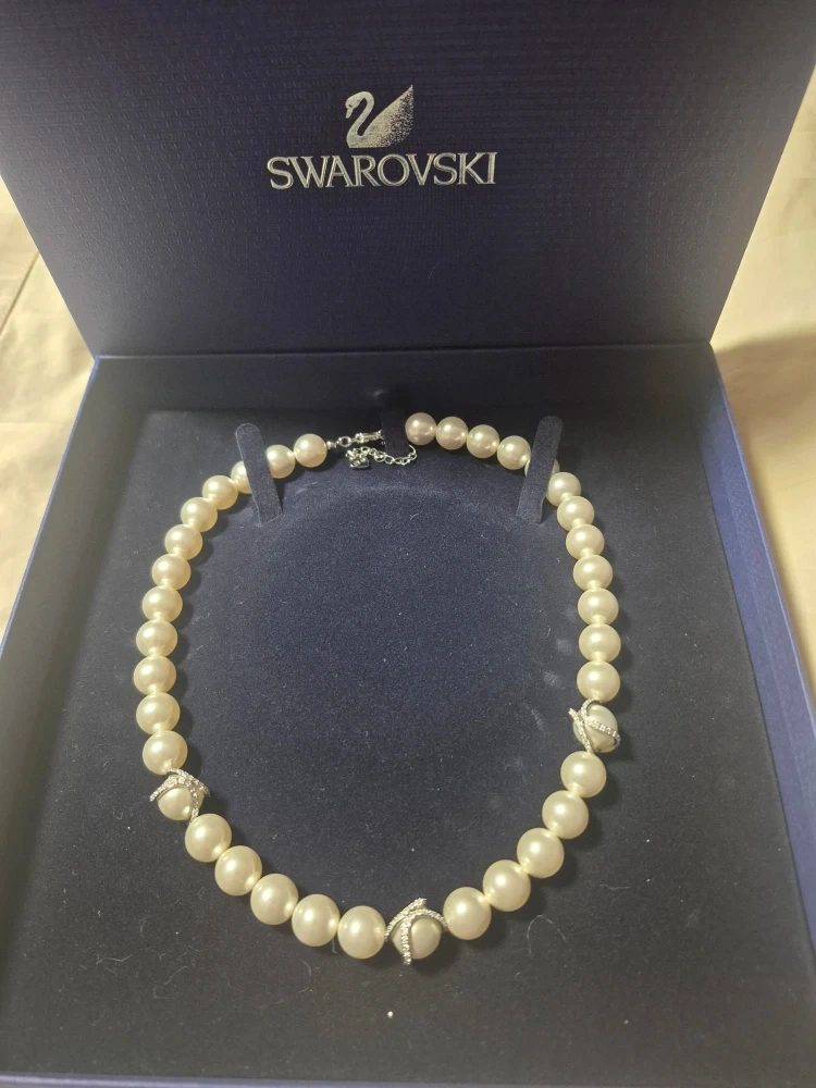 Selling a beautiful Swarovski pearl necklace that comes with its original box. The necklace features elegant pearl beads complemented by sparkling crystal accents. It's a timeless piece that would add a touch of sophistication to any outfit!
