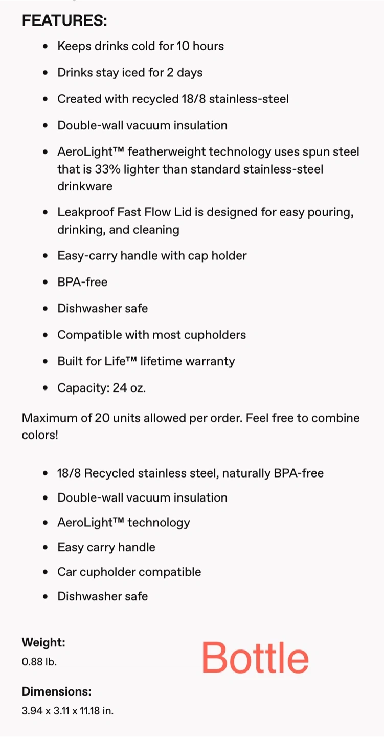 - Drinks stay iced for 2 days