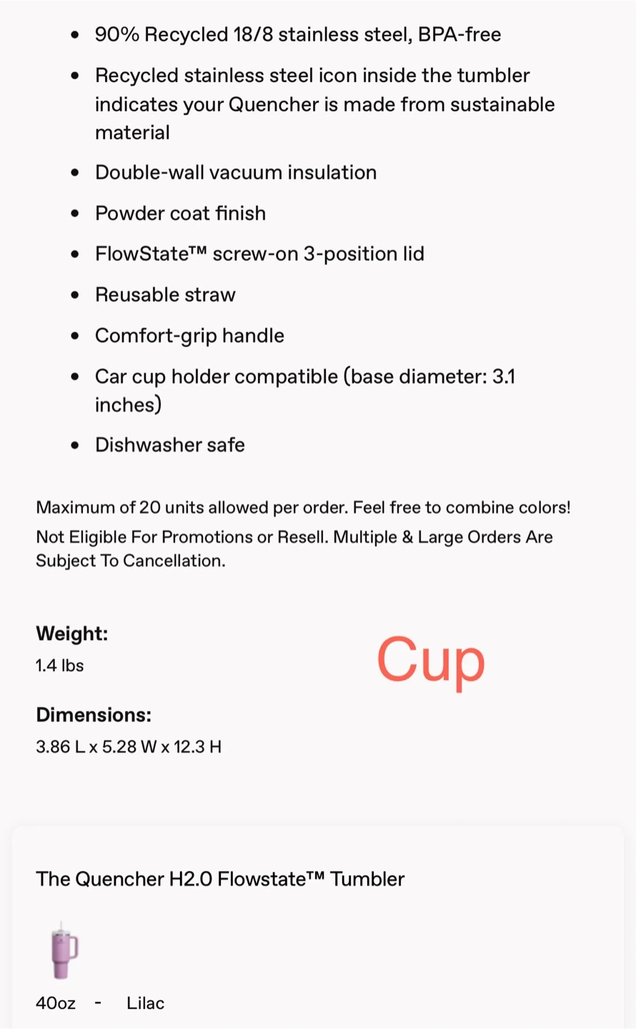 Selling a Stanley 40oz Tumbler in lilac, along with a 24oz bottle!