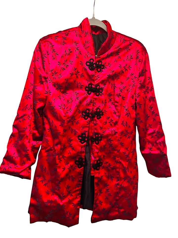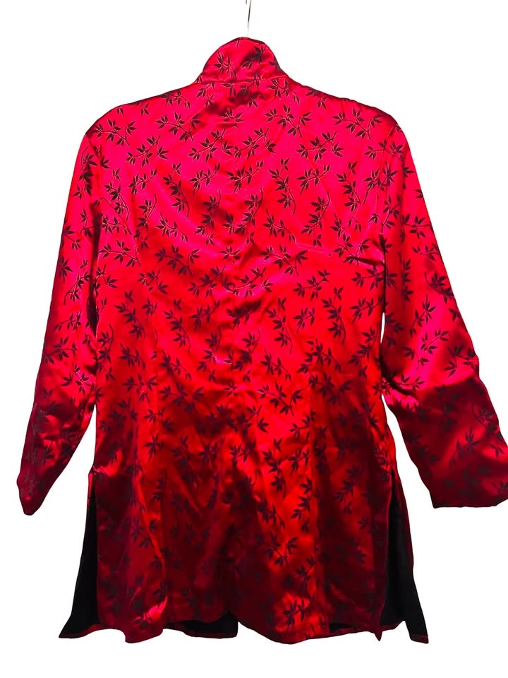 Red Satin Floral Brocade Jacket | Med | $35