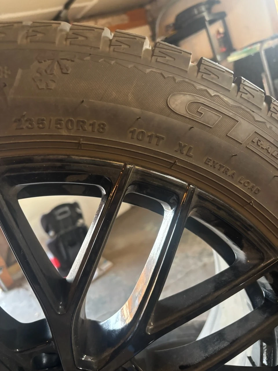 Selling a set of GT Radial Champiro Ice studded winter tires off of a 2022 mustang GT. The size is 235/50R18, and they have an extra load rating of 101T XL. Great for winter driving!