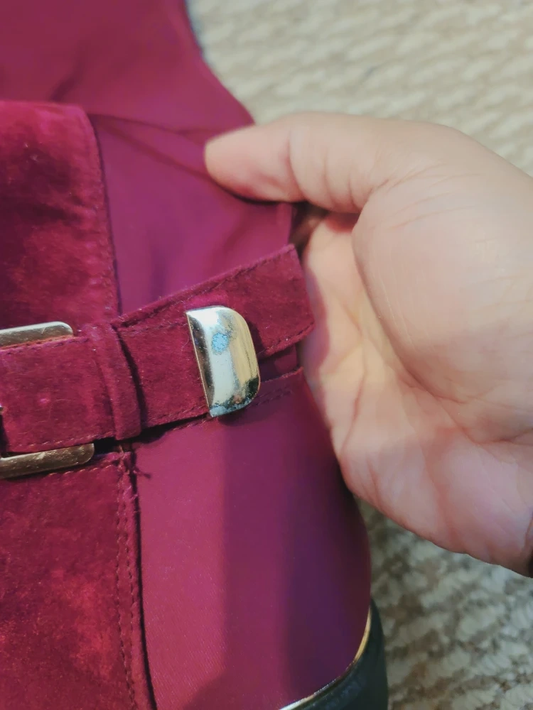 There is a small discolouration spot on one buckle, not noticeable unless looking up close.