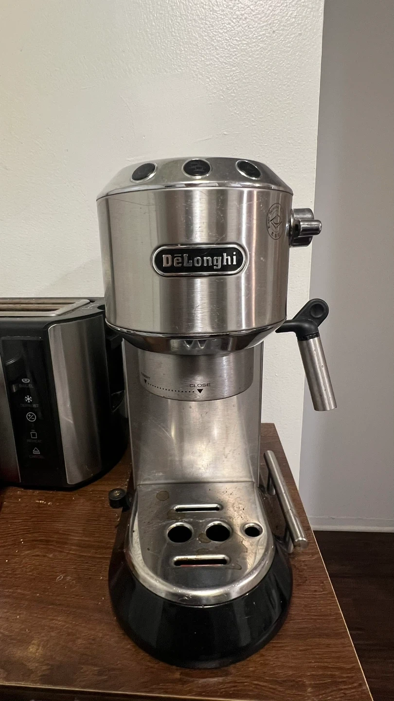 Selling a used DeLonghi espresso machine. It's in good working condition and ready to make some delicious coffee!