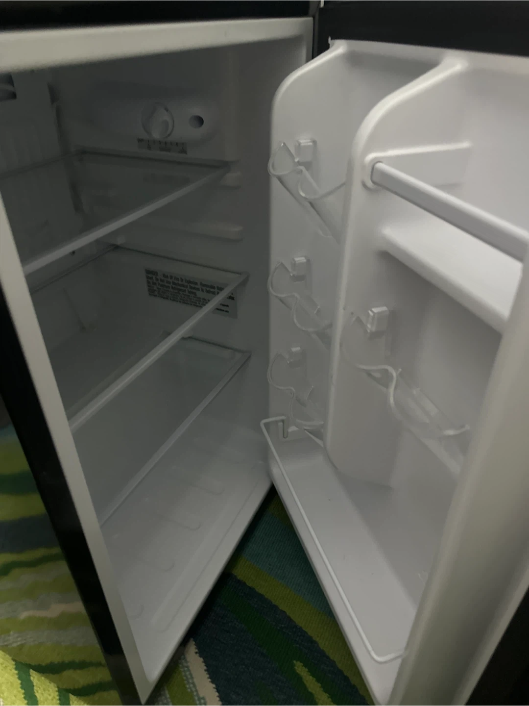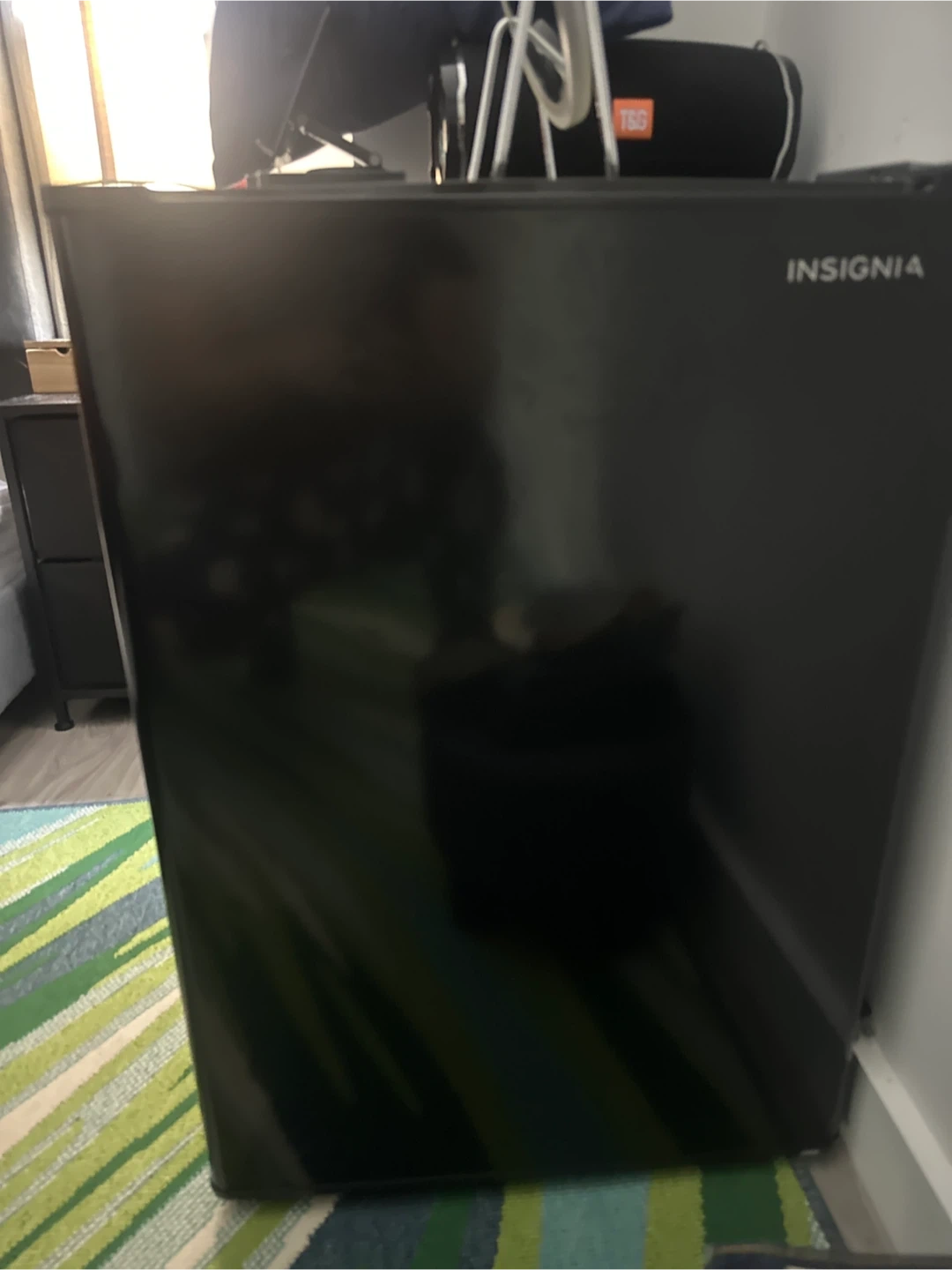 Selling an Insignia mini fridge in black. It's in great condition and ready to keep your drinks and snacks cool. Perfect for a dorm room, office, or small apartment!