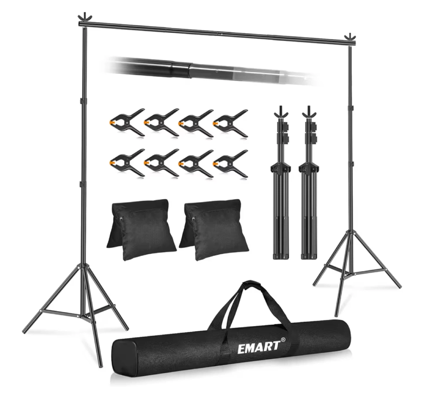 • 2 tripod backdrop stands, A retractable crossbar, 8 clamps, 2 durable sandbags and a carry bag