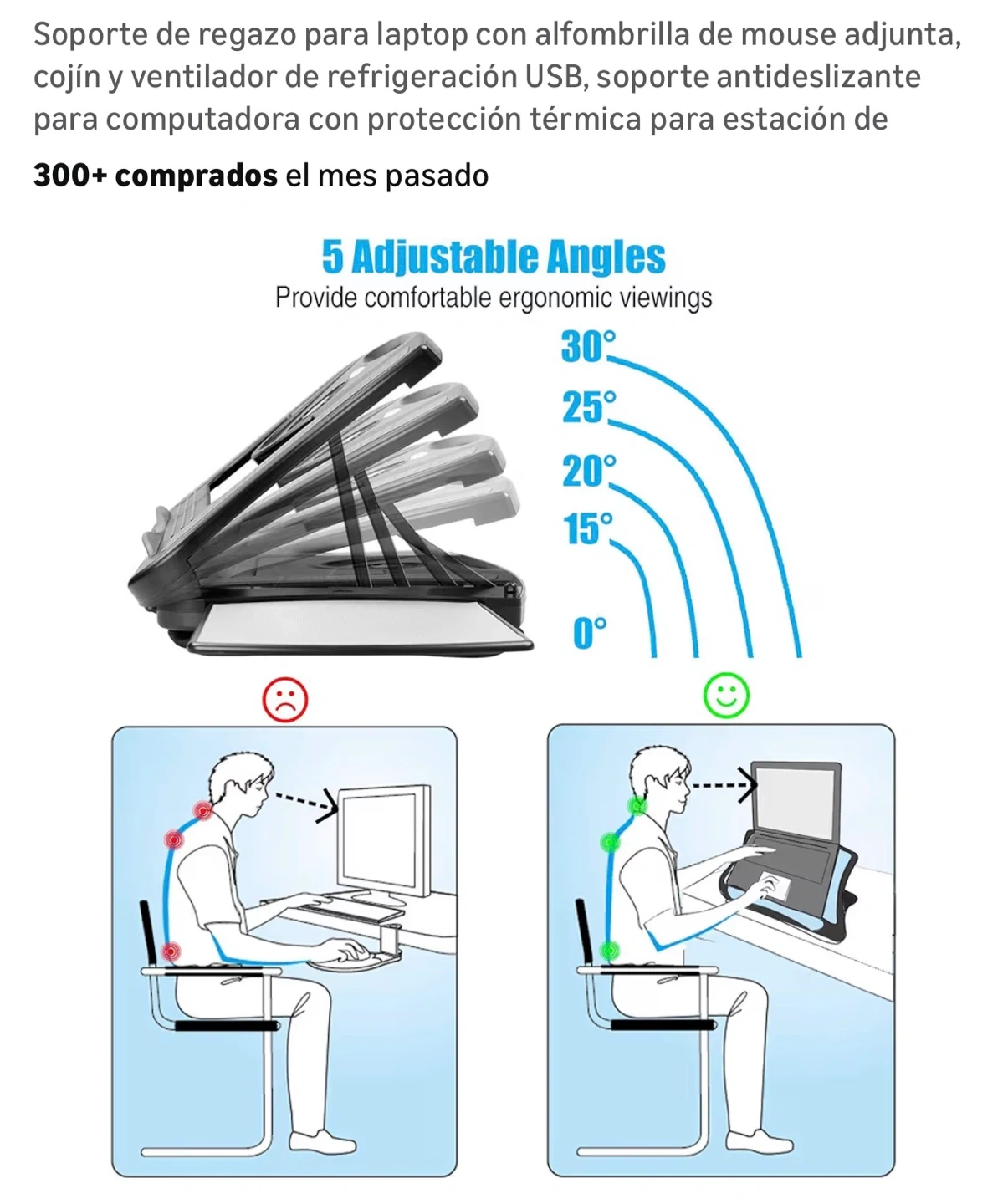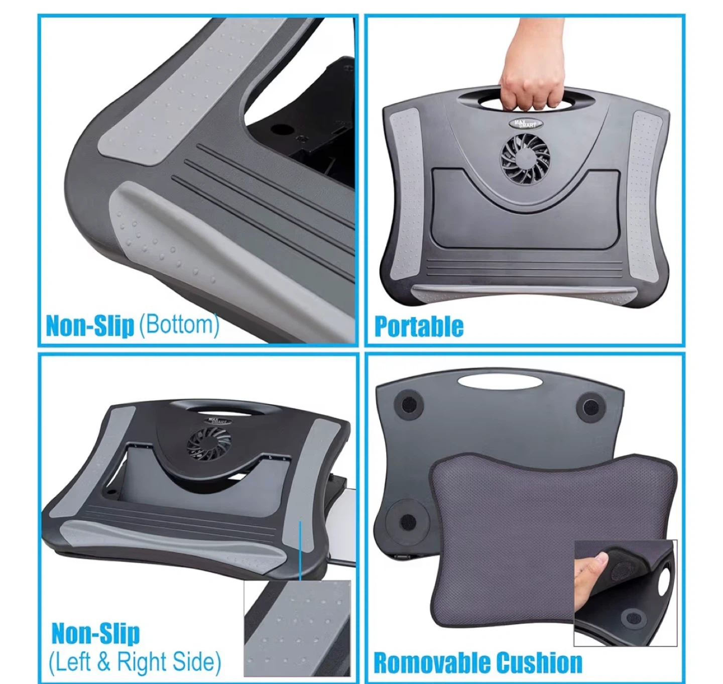 - Non-slip surfaces on the bottom and sides to keep your laptop secure