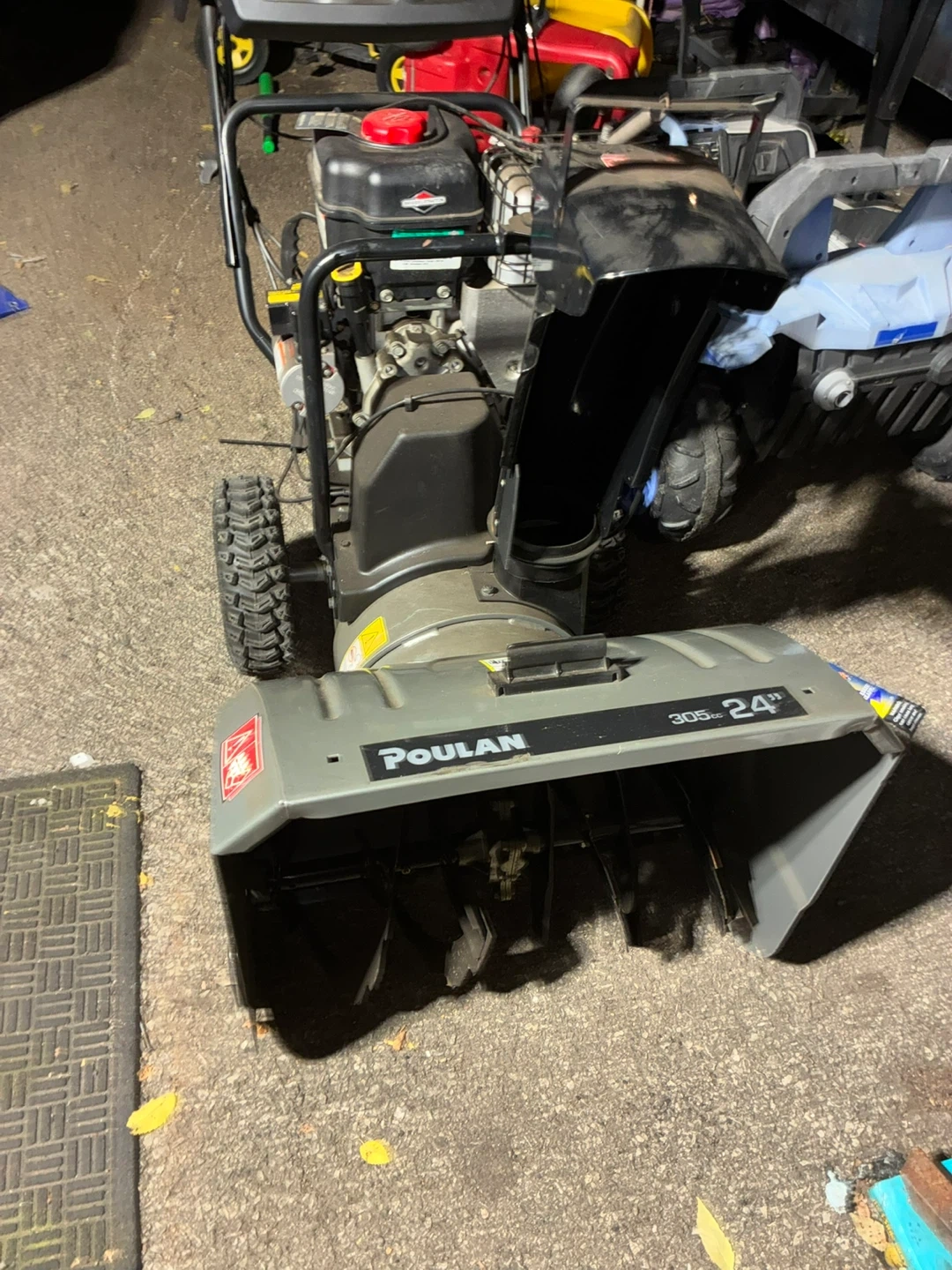 Selling a Poulan snow blower. It's a 305 model with a 24-inch clearing width. Great for getting rid of snow this winter