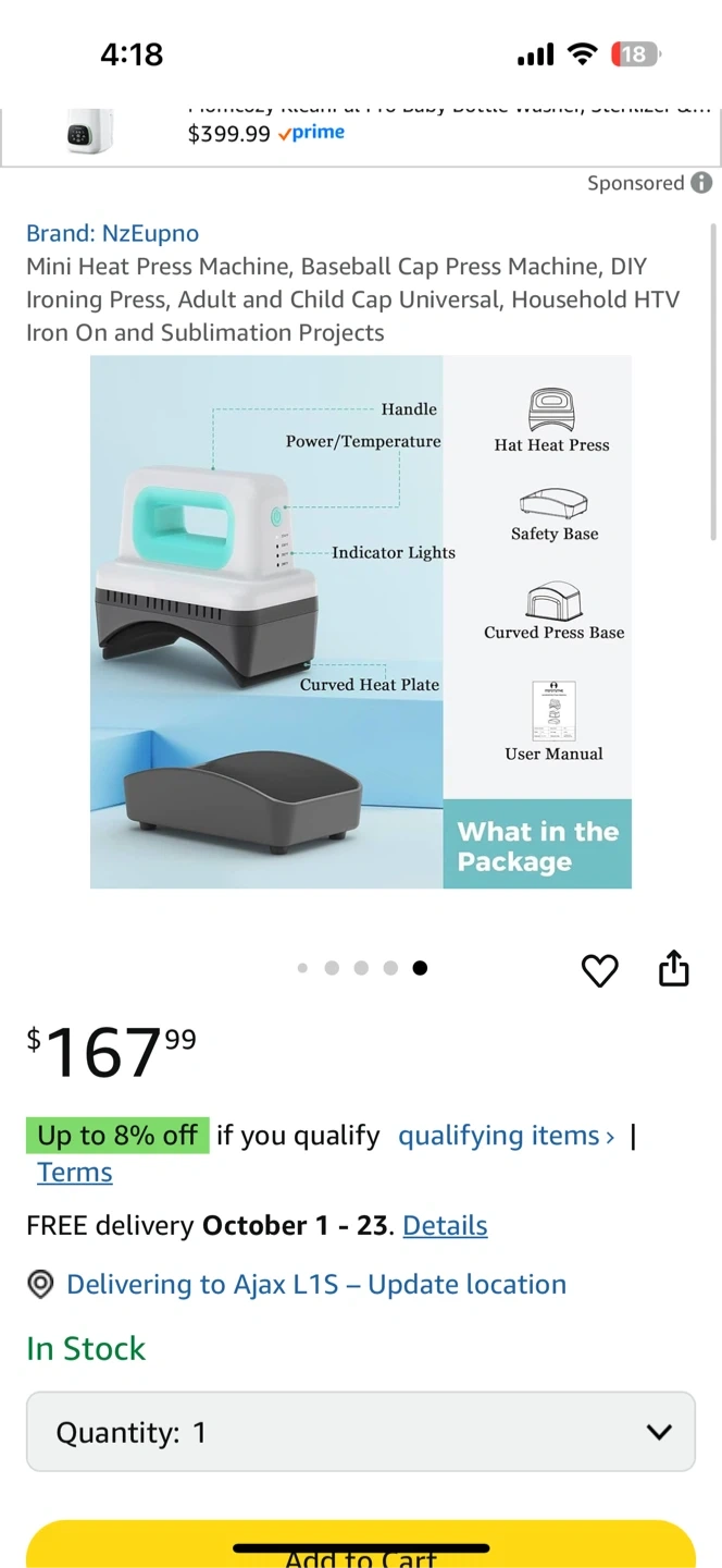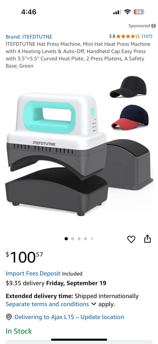 brand new Selling a mini hat press machine by ITEFDTUTNE. It has 4 heating levels and auto-off, plus a handheld cap-easy press with a 3.5"x5.5" curved heat plate. It also comes with 2 press platens and a safety base. The box is included!