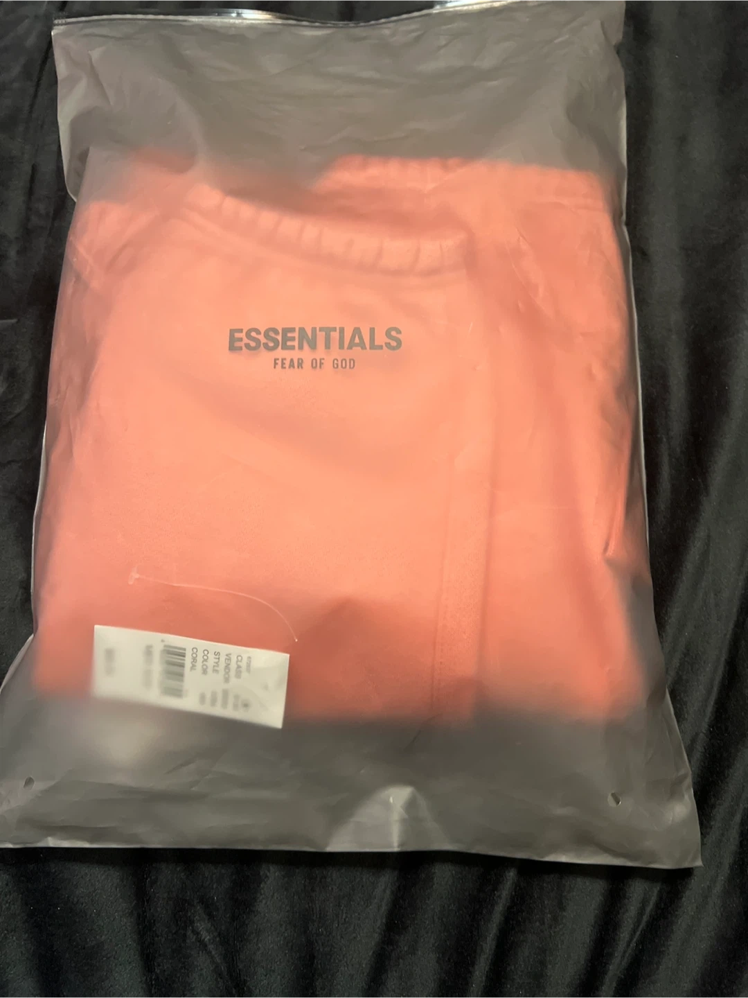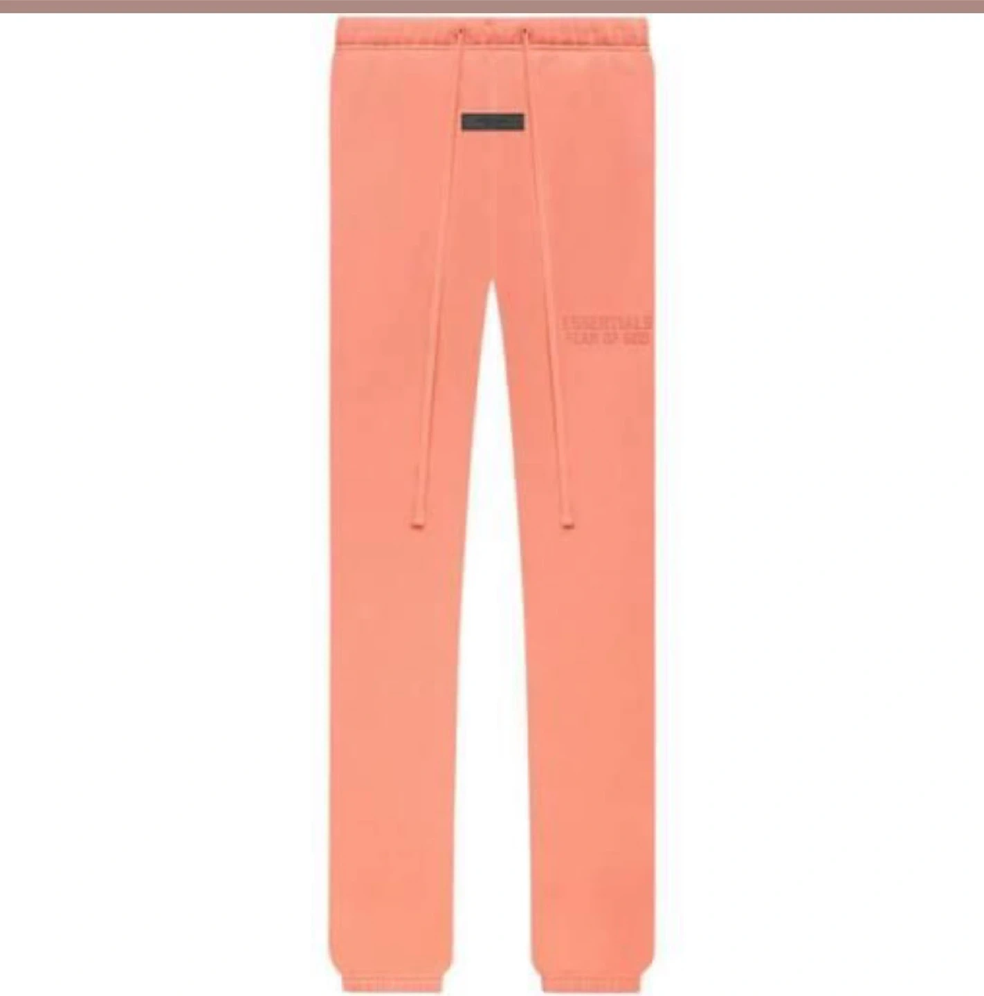These are Essentials Fear of God sweatpants in a coral color, size medium. They are in great condition and come in the original packaging!