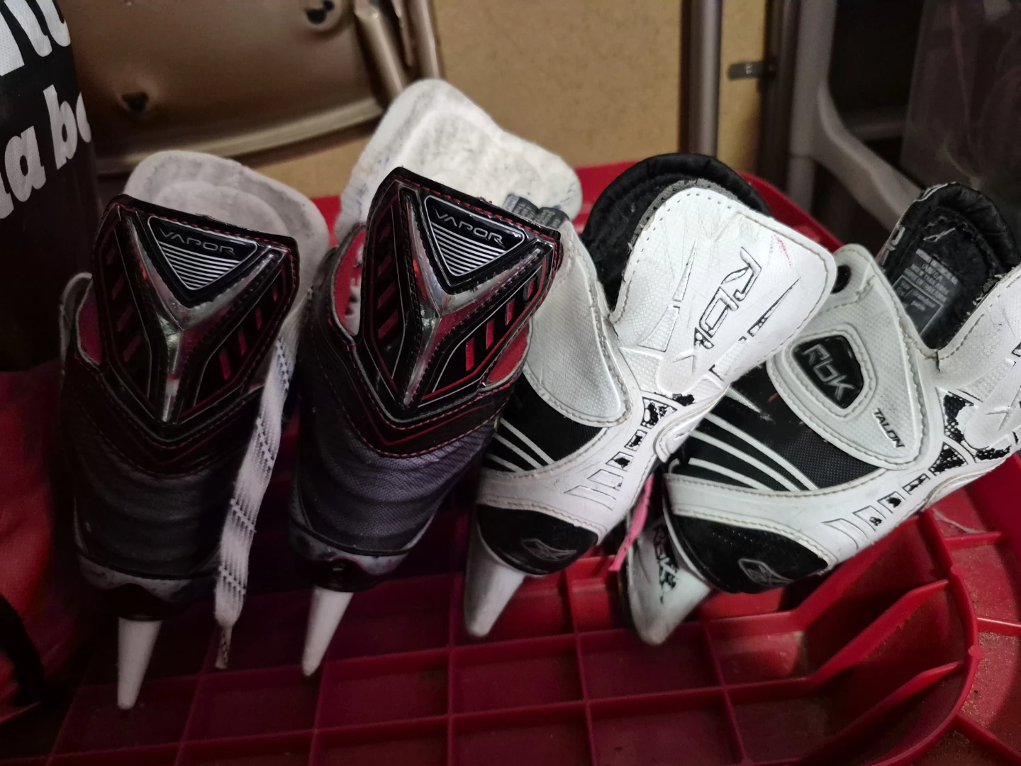 Selling a pair of Bauer Vapor X600 hockey skates. One pair is size US 12 and the other pair is size US Y13.5. They're in good condition , $15 each pair or $25 for both