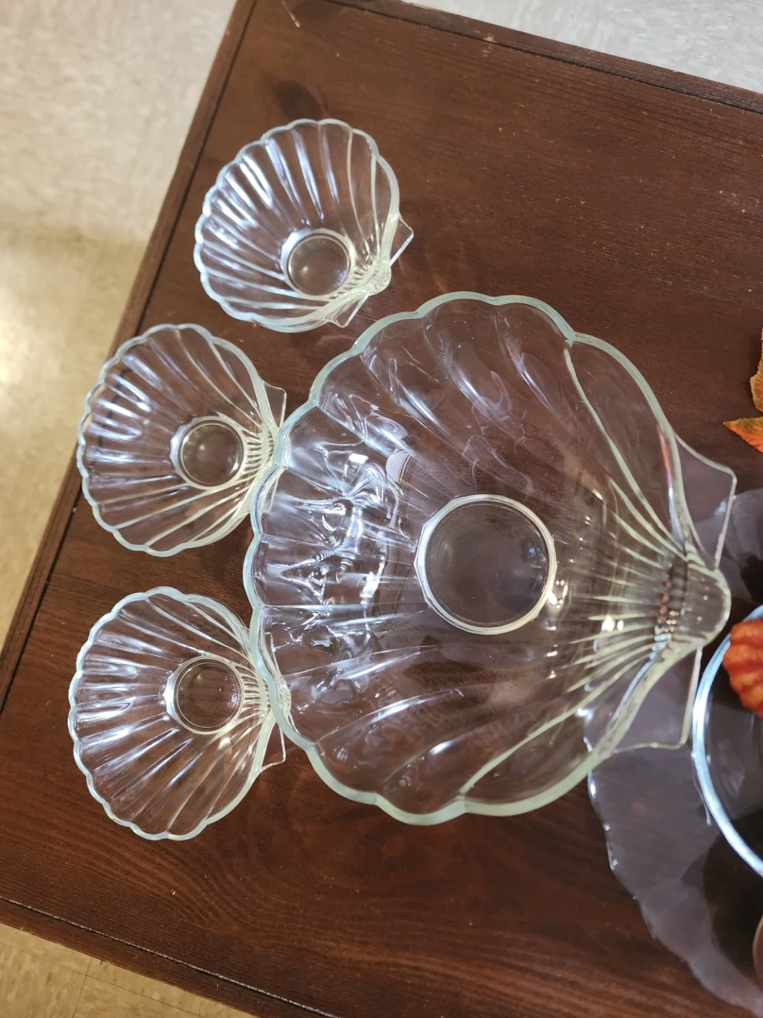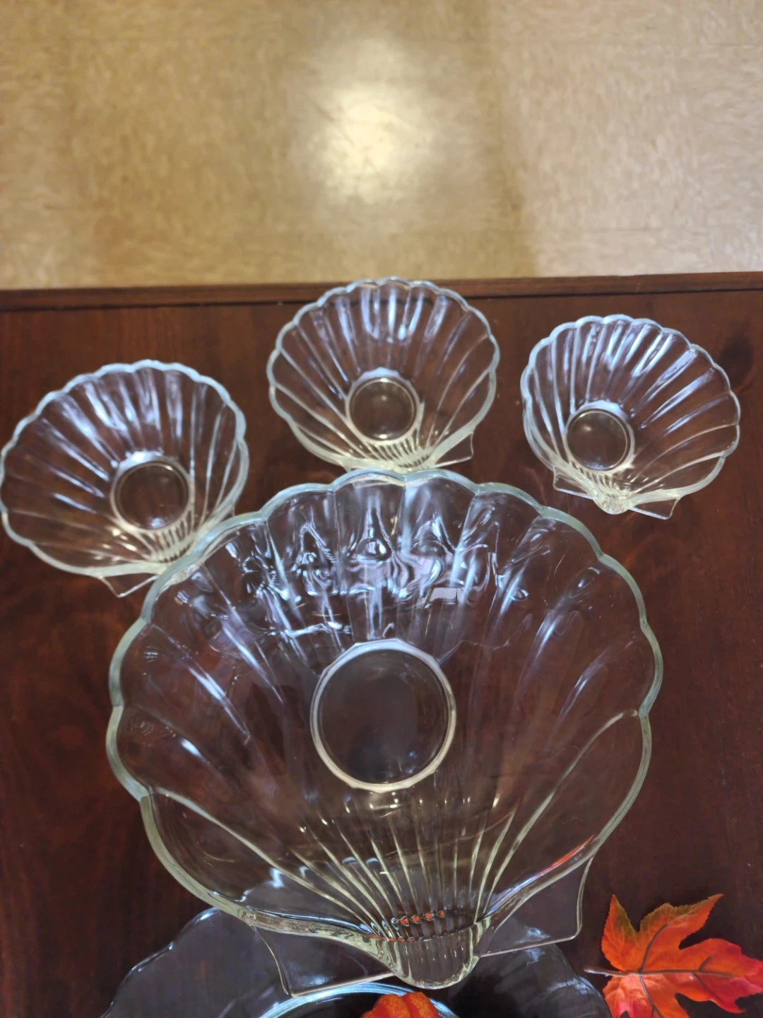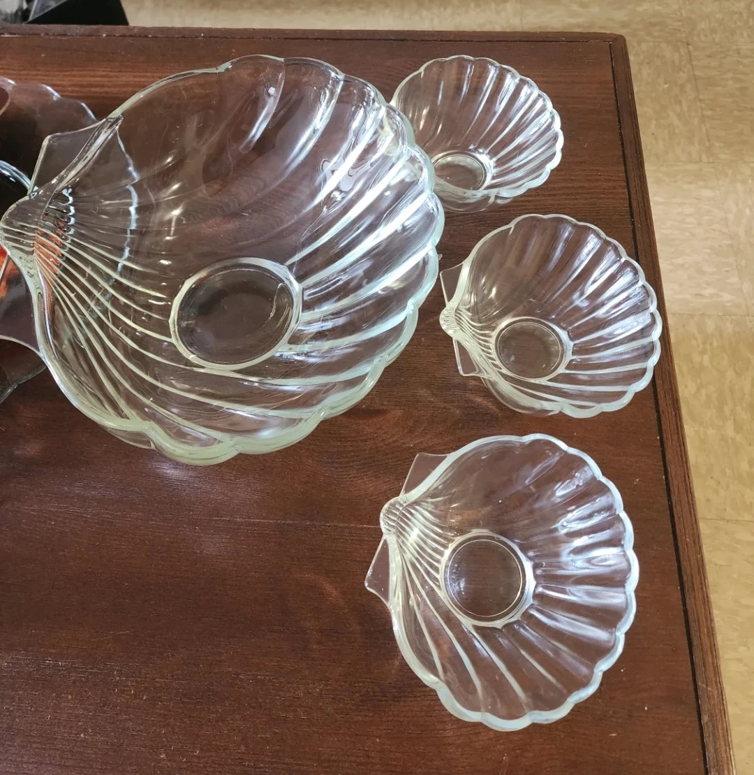 ¡Vendo un precioso juego de cuencos de cristal con forma de conchas marinas! Este juego incluye un cuenco más grande y tres más pequeños, perfectos para servir aperitivos, postres o para exponer objetos decorativos. Aportan un toque de elegancia marinera a cualquier mesa.