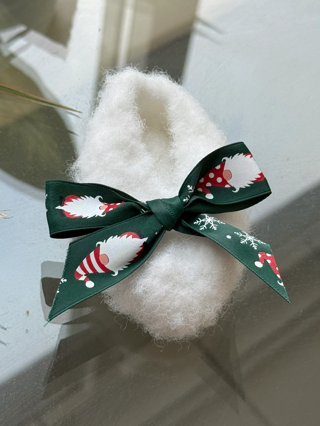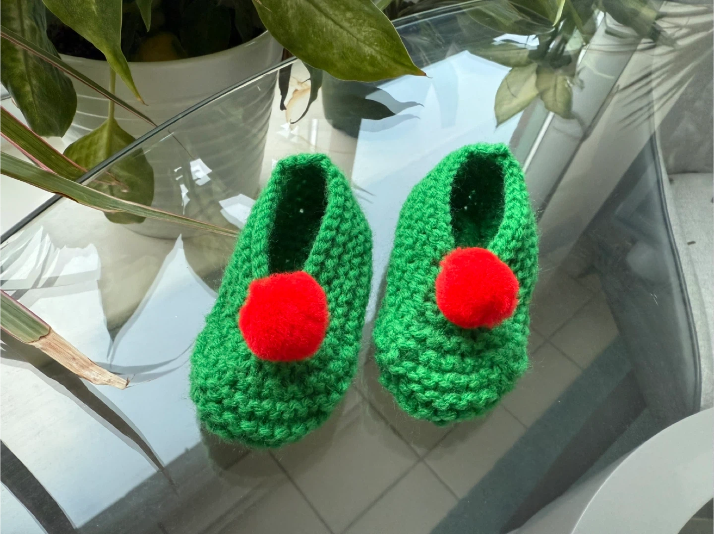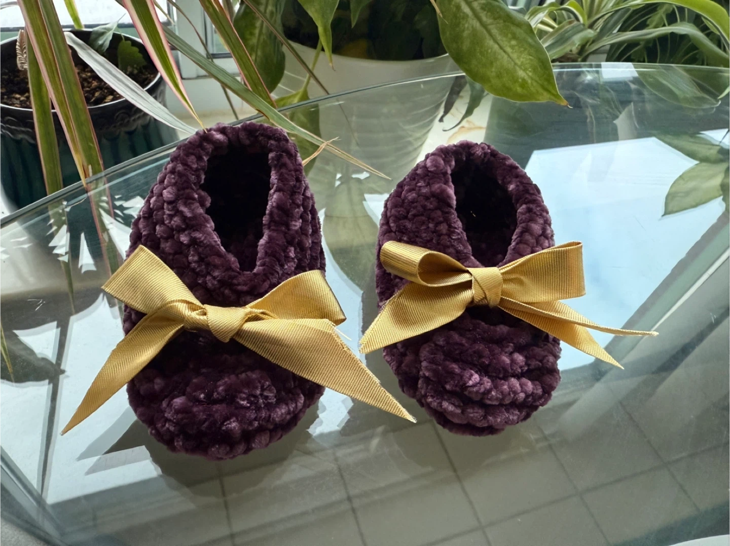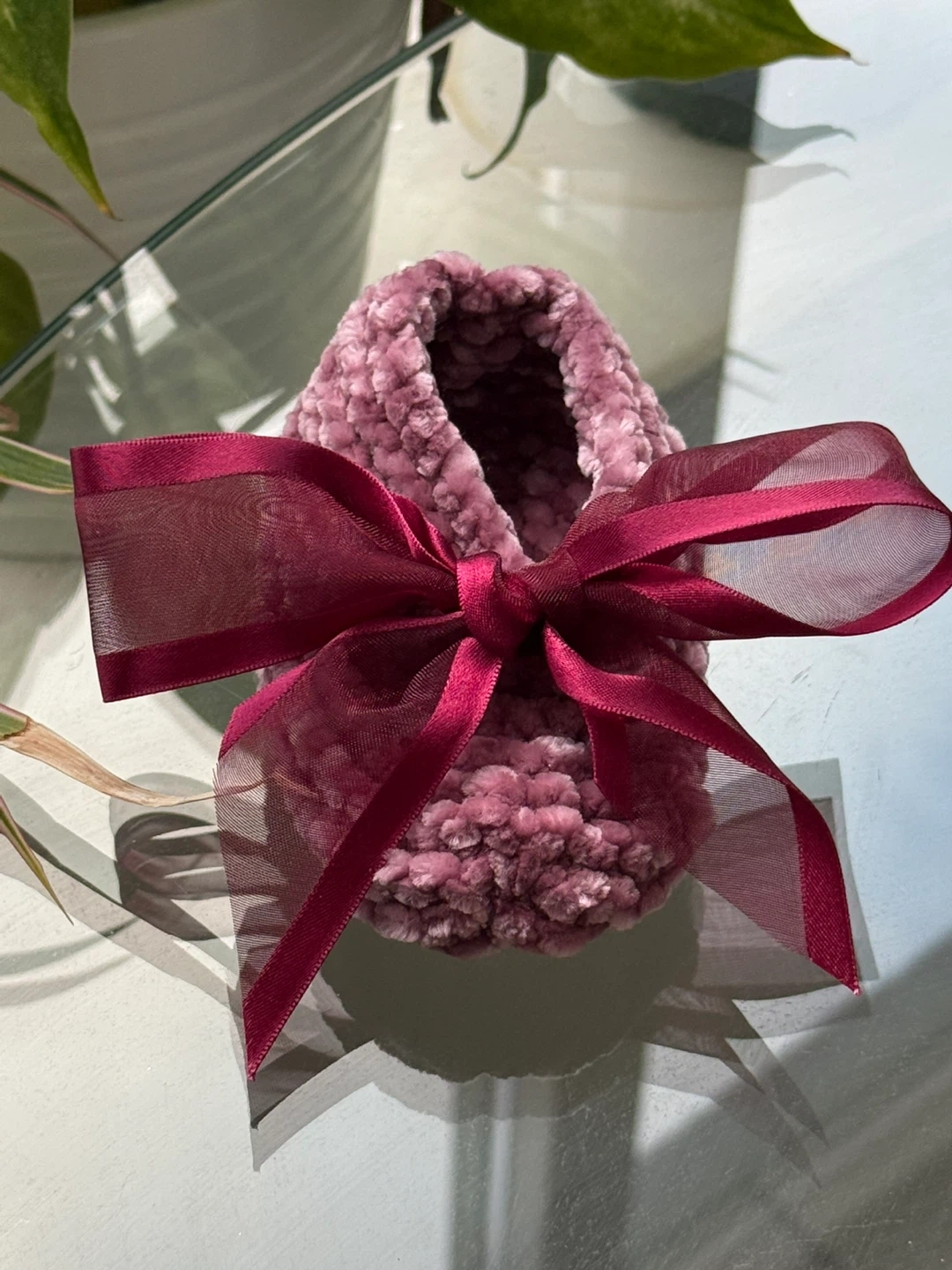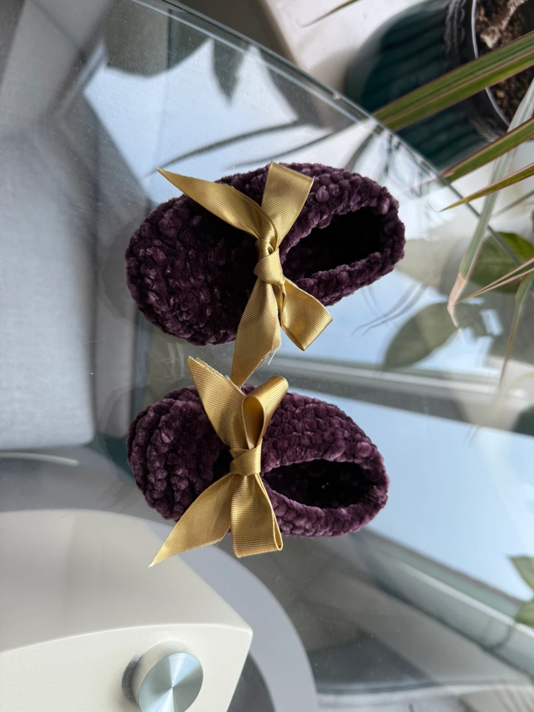 These adorable handmade crochet baby booties are brand new and ready for a little one! They're made with soft, cozy yarn and feature a cute ribbon detail. Perfect for keeping tiny toes warm and stylish