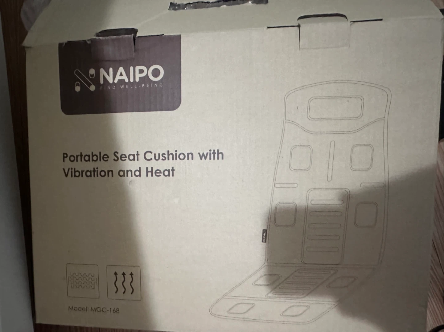 Selling a Naipo portable seat cushion in great condition! This cushion features vibration and heat for a relaxing experience. Model number is MGC-168. Comes with the original box and remote control! Massage Seat Cushion – NAIPO (Model MGC-168) In excellent condition - 100% working Portable massage chair with vibration + heat for the back and lower part. Very comfortable, suitable for home or office, and with a remote control to control the vibration and temperature level. ✔️ Heat for the back ✔️ Vibration in different areas ✔️ Brushes on any chair ✔️ Light and easy to store ✔️ FROM THE WELL-KNOWN NAIPO COMPANY Condition: New / Never Used”
