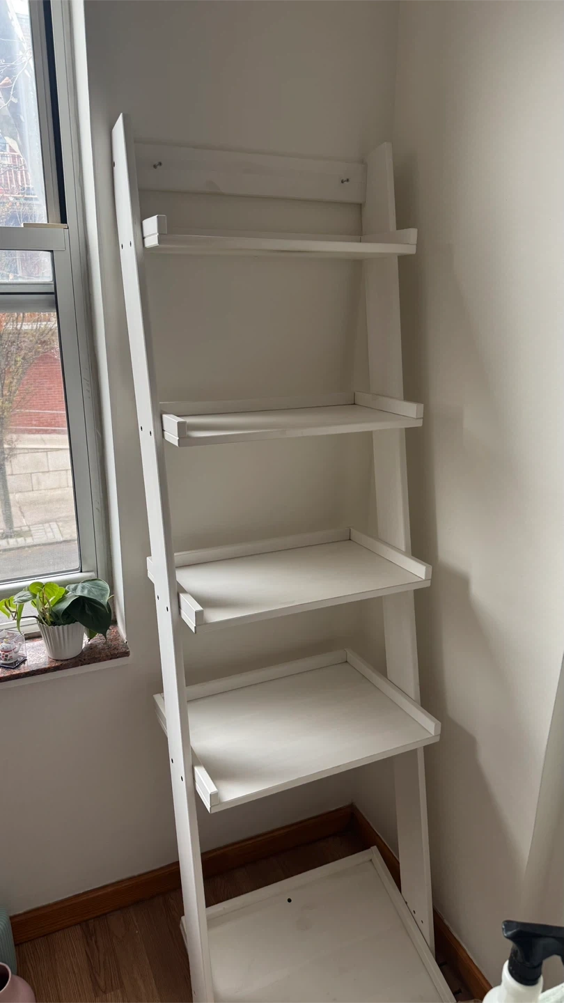 Selling a white ladder shelf. It's in great condition and ready for a new home. It's perfect for displaying books, plants, or other decorative items. It would look great in any room of your house!
