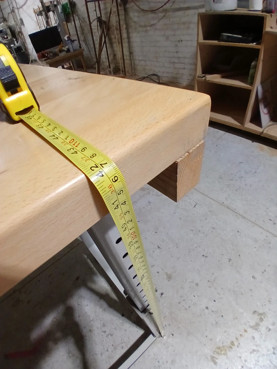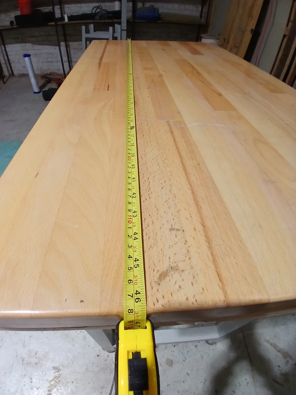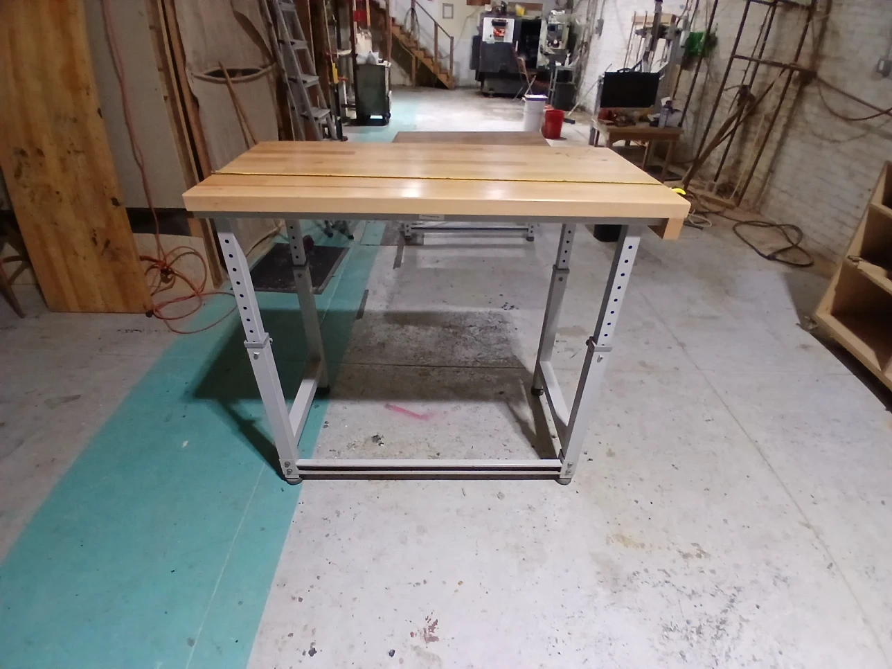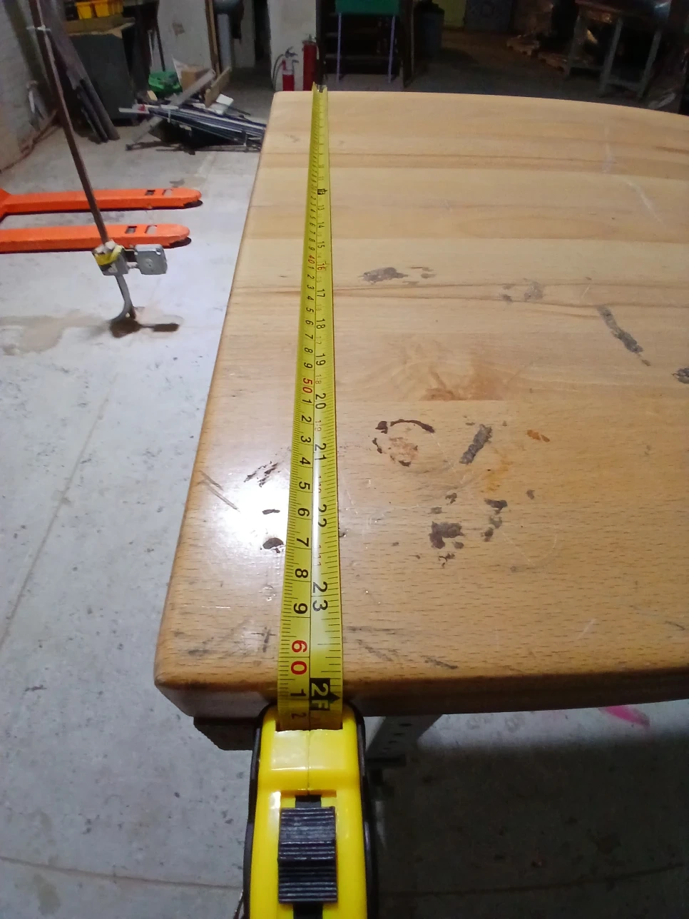 Selling an adjustable height work table. It appears to be in good condition and ready for a new workshop or workspace. The tabletop measures approximately 60 inches in length and 30 inches in width.