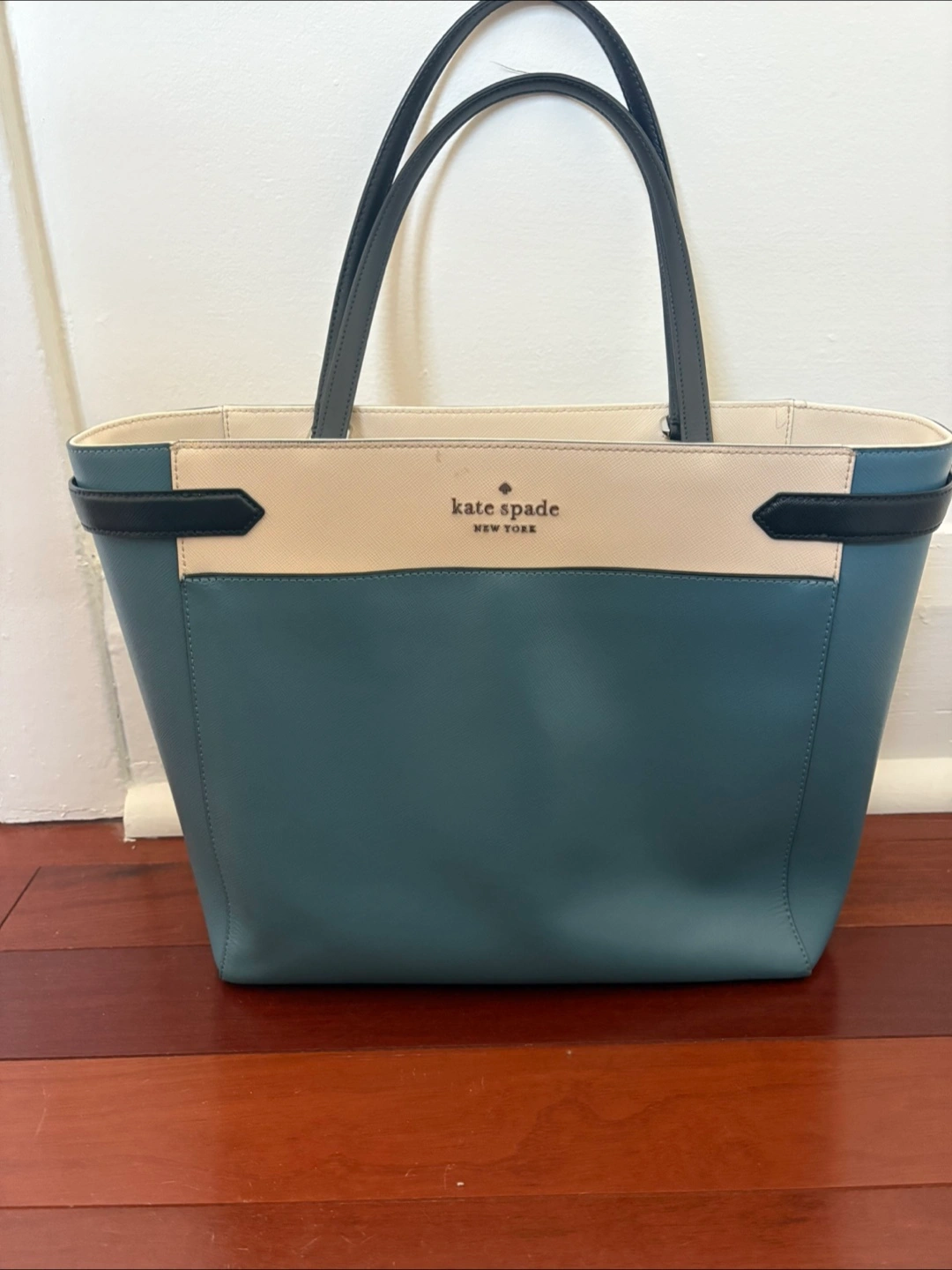 Here's a Kate Spade New York tote bag in a lovely blue colour! It's in great condition and ready for a new owner. Perfect for carrying your essentials in style. The bag includes padding so it’s perfect for carrying your laptop to work!