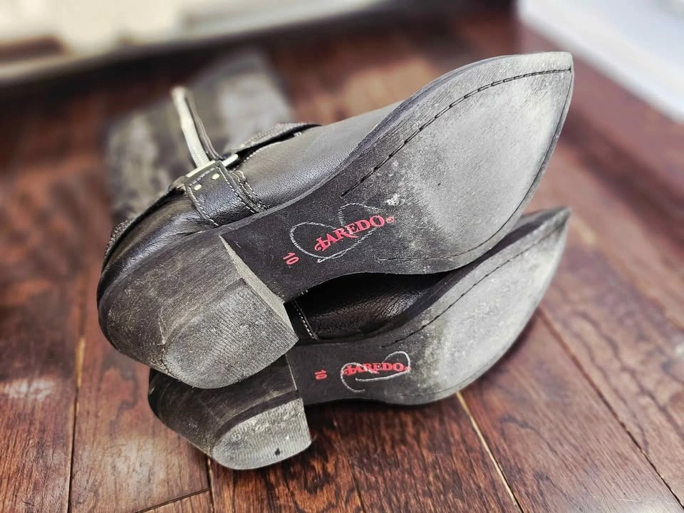 Boot are in good used condition with some signs of wear and lots of life left in them. There is wear to the soles and heels, plus some scrapes and general scuffs around the heels and toes.