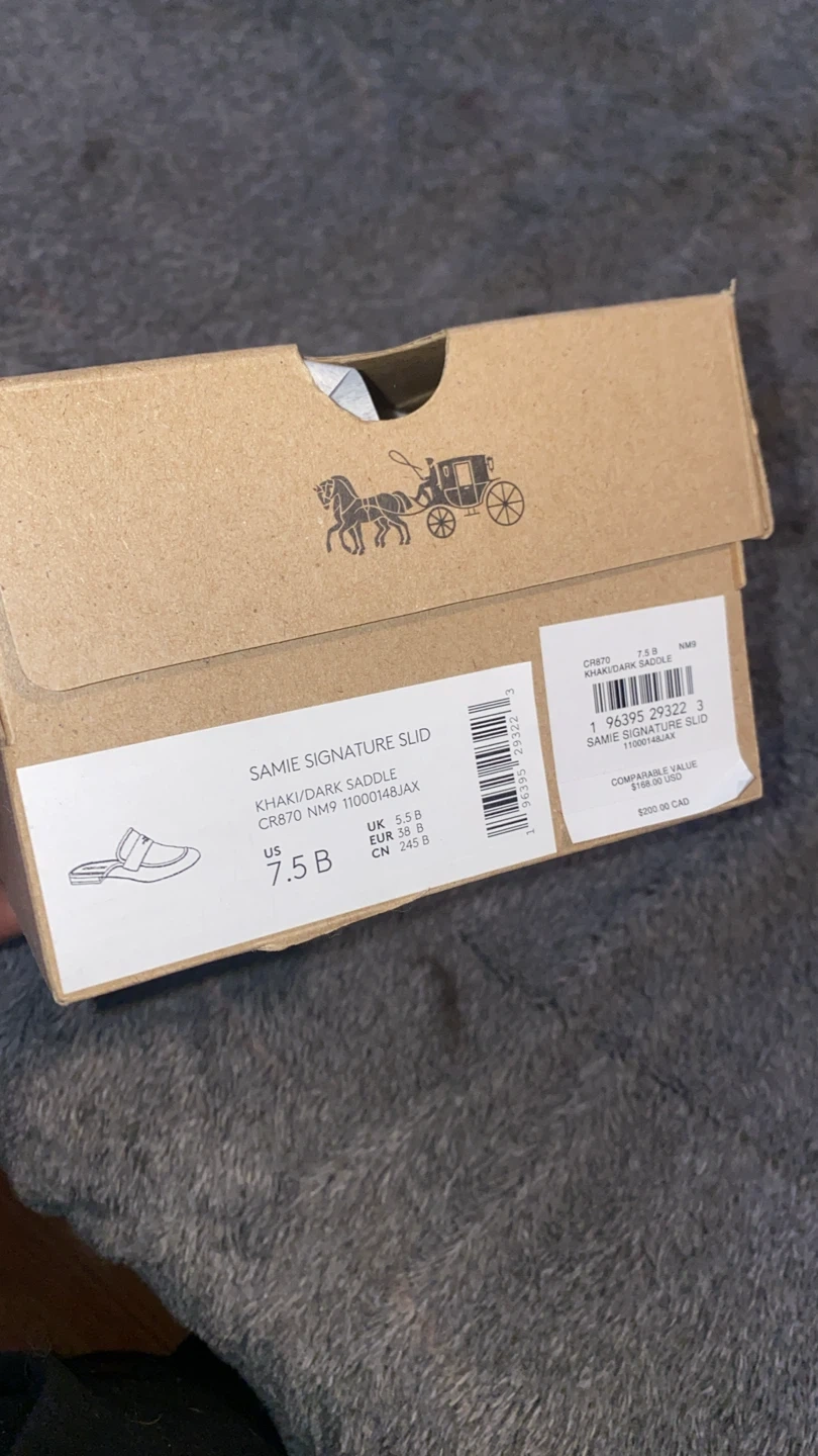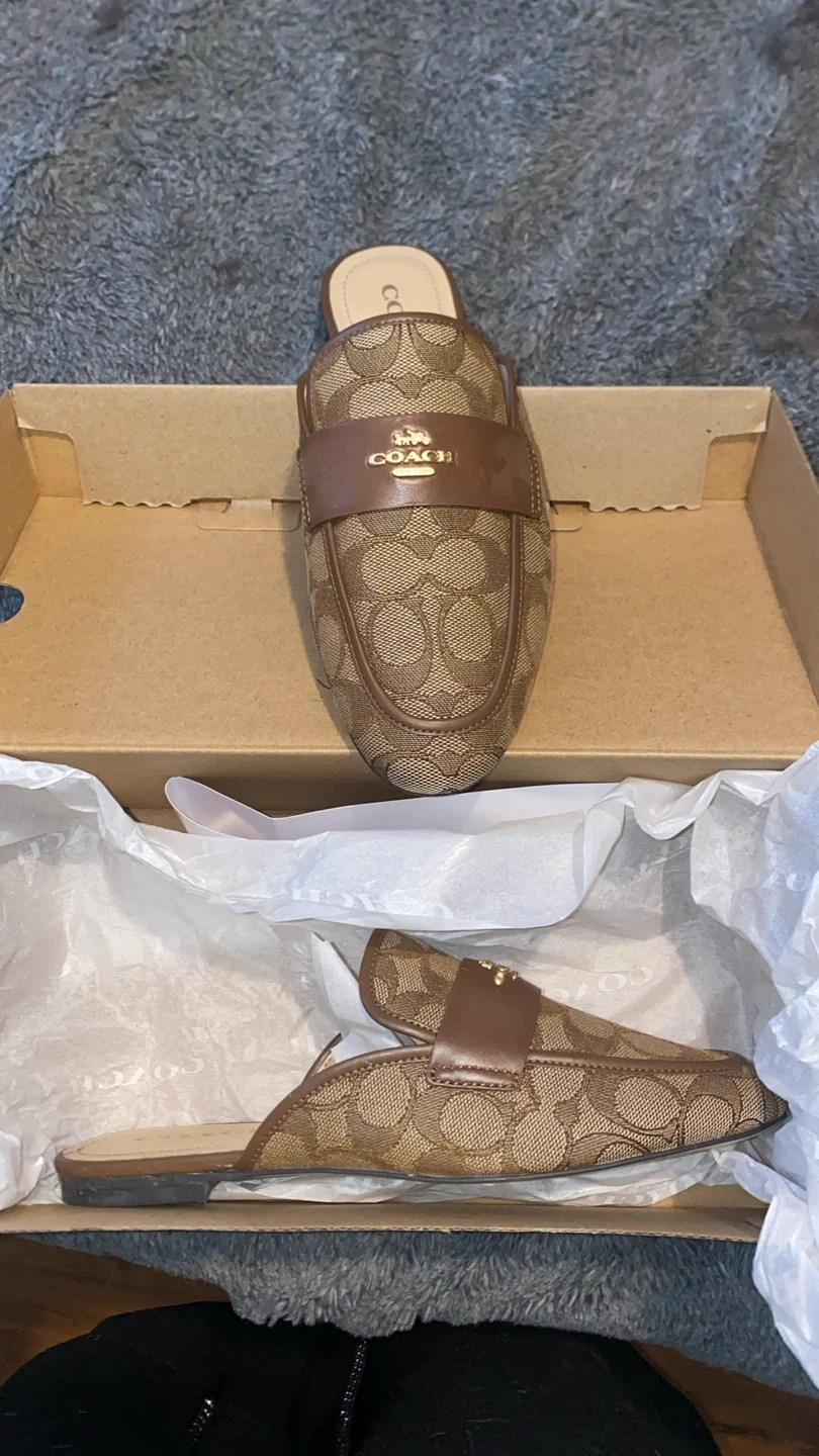 Selling a pair of Coach Samie Signature Slides in size 7.5B! They are in great condition and come with the original box. The colour is khaki/dark saddle. These stylish slides feature the classic Coach signature pattern. Originally valued at $200 CAD
