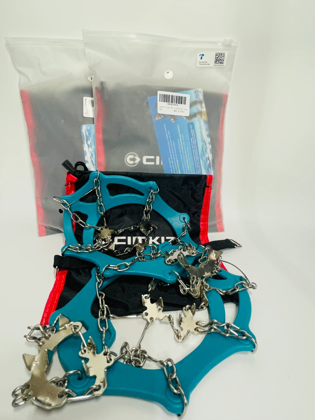 Get ready for winter with these Cimkiz crampons! They're perfect for adding traction to your boots or shoes when hiking, fishing, walking, climbing, or mountaineering. These anti-slip ice cleats have 19 stainless steel spikes to keep you safe on snow and ice. Comes with the storage bag.