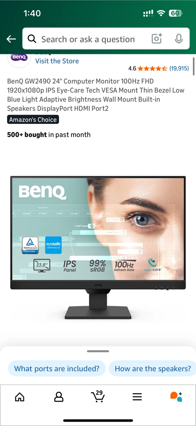 1 / 21 / 2Buy & SellBenQ 24" Computer MonitorBenQ 24" Computer Monitor$36My friend gave me but i’d never use itConditionLike newBrandBenQWHERE TO MEETCheck LocationView MapSELLERbtskimchiLoop746 reviews1 chats·0 favorites·30 viewsSEND CHAT TO SELLERHi btskimchi! I’m interested in your listing.Hi btskimchi! I’m interested in your listing.Get the Karrot app to chatSign In to chat