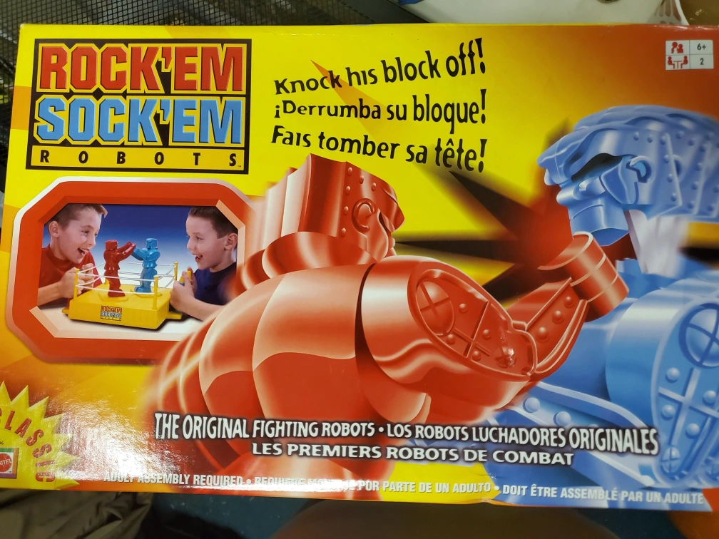 Selling a Rock'em Sock'em Robots game! It's the classic game of battling robots. You power the punches. Move into position and hammer your opponent's robot until you knock his block off! Watch out...your block can be knocked off too!