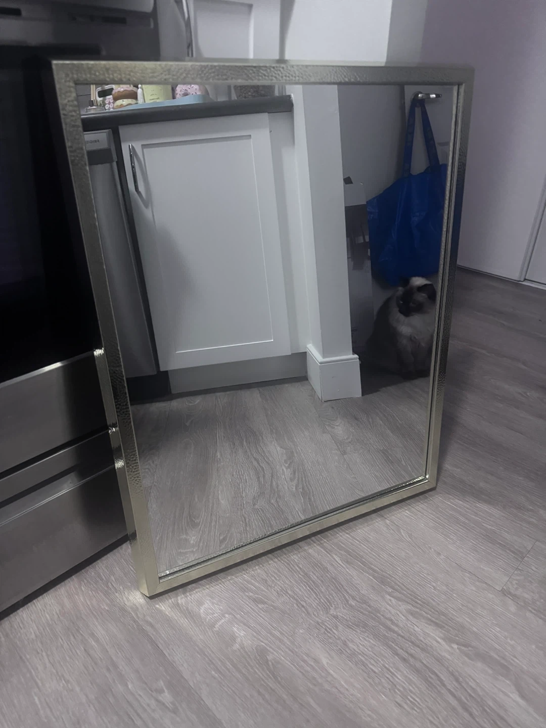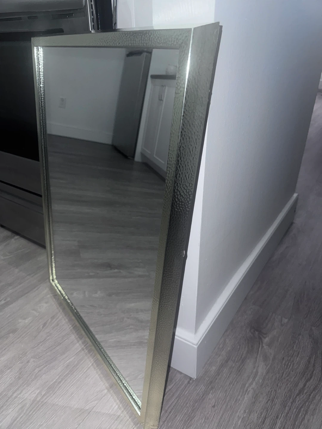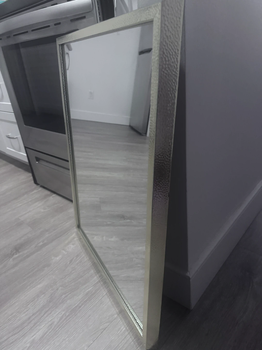 Selling a nice silver framed mirror. It measures approximately 28 inches in height and 22 inches in width. Great for adding a touch of elegance to any room!