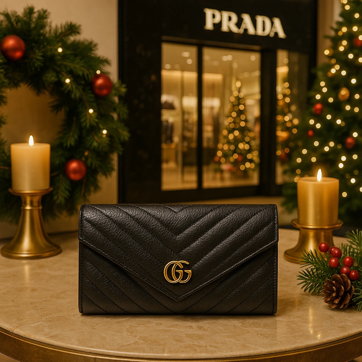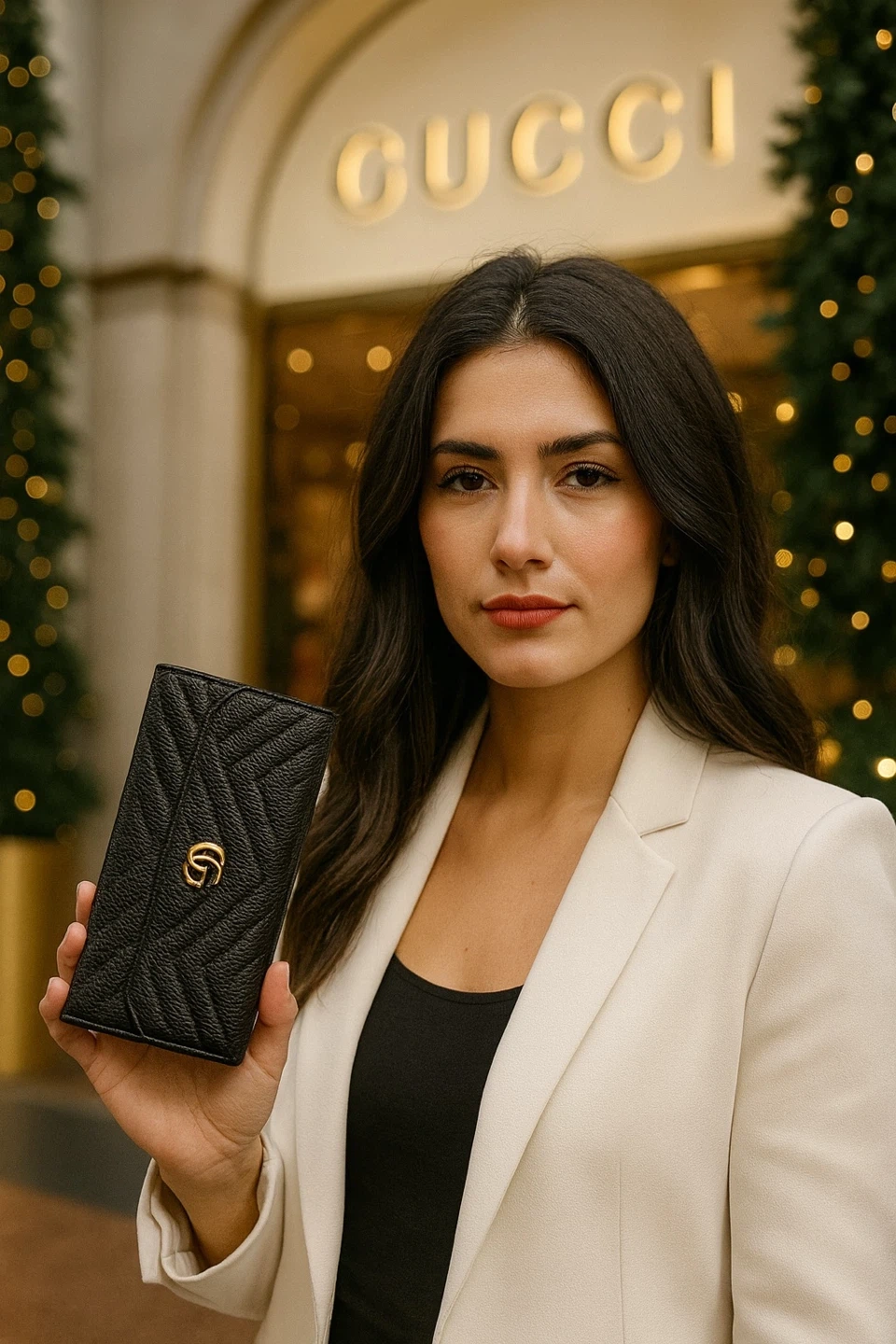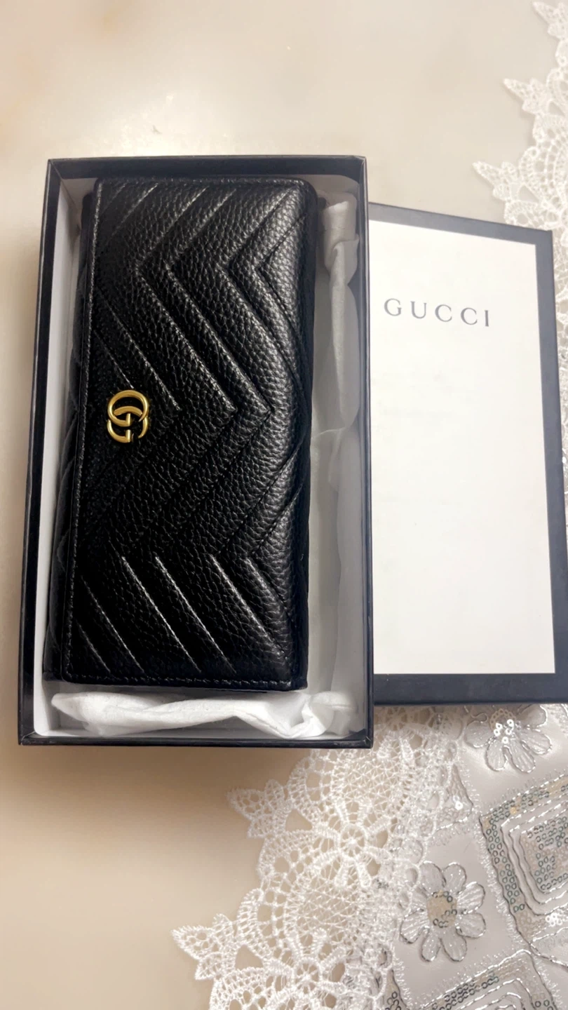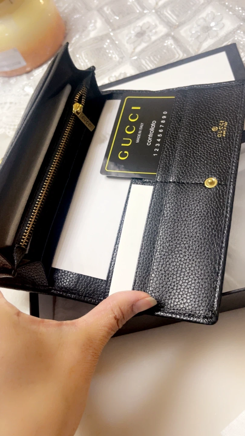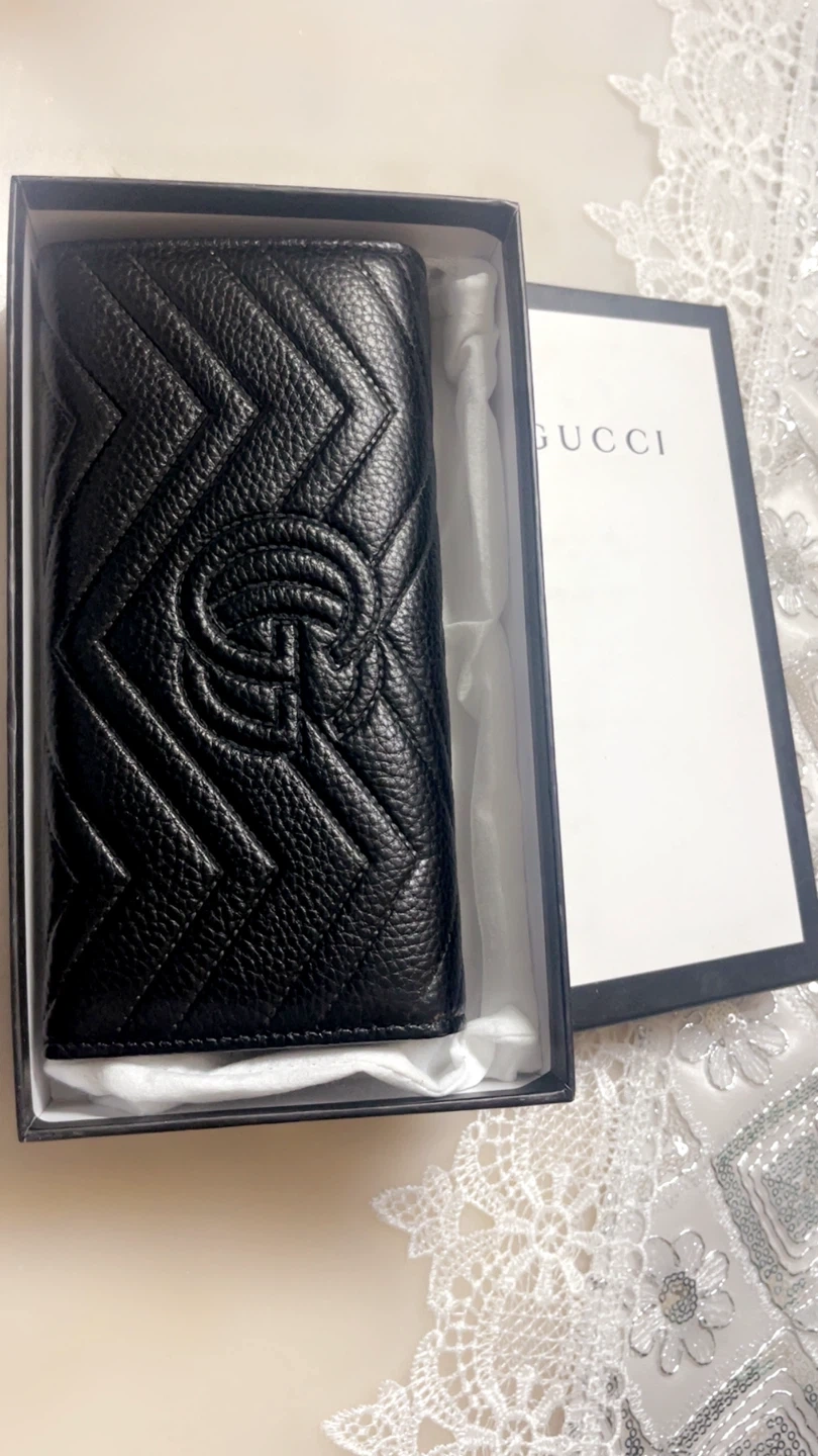 beautiful Gucci Marmont wallet in black leather. It's in excellent condition and comes with the original box. The wallet features the iconic GG logo and a well-organized interior. A stylish and functional accessory!