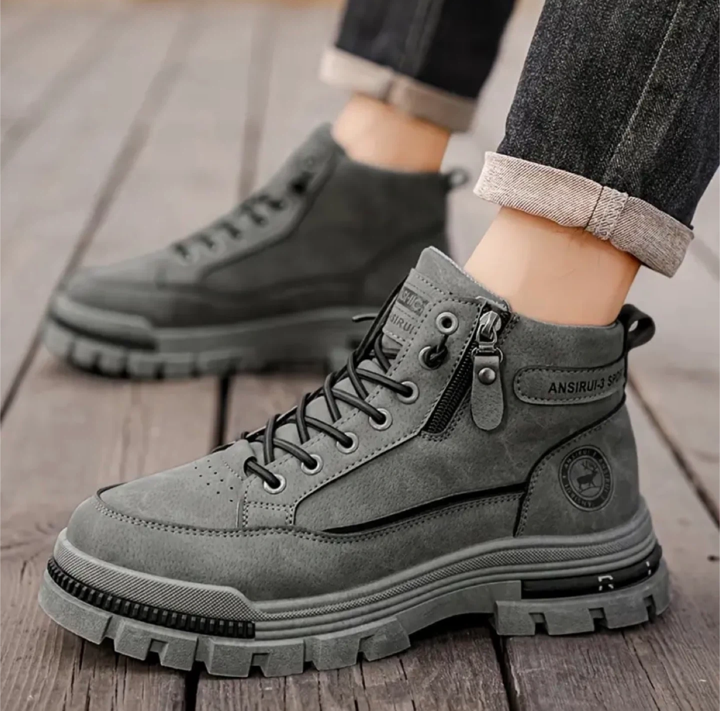 Men's Heavy-Duty Mid-Calf/High-Ankle Zipper & Lace-Up Outdoor