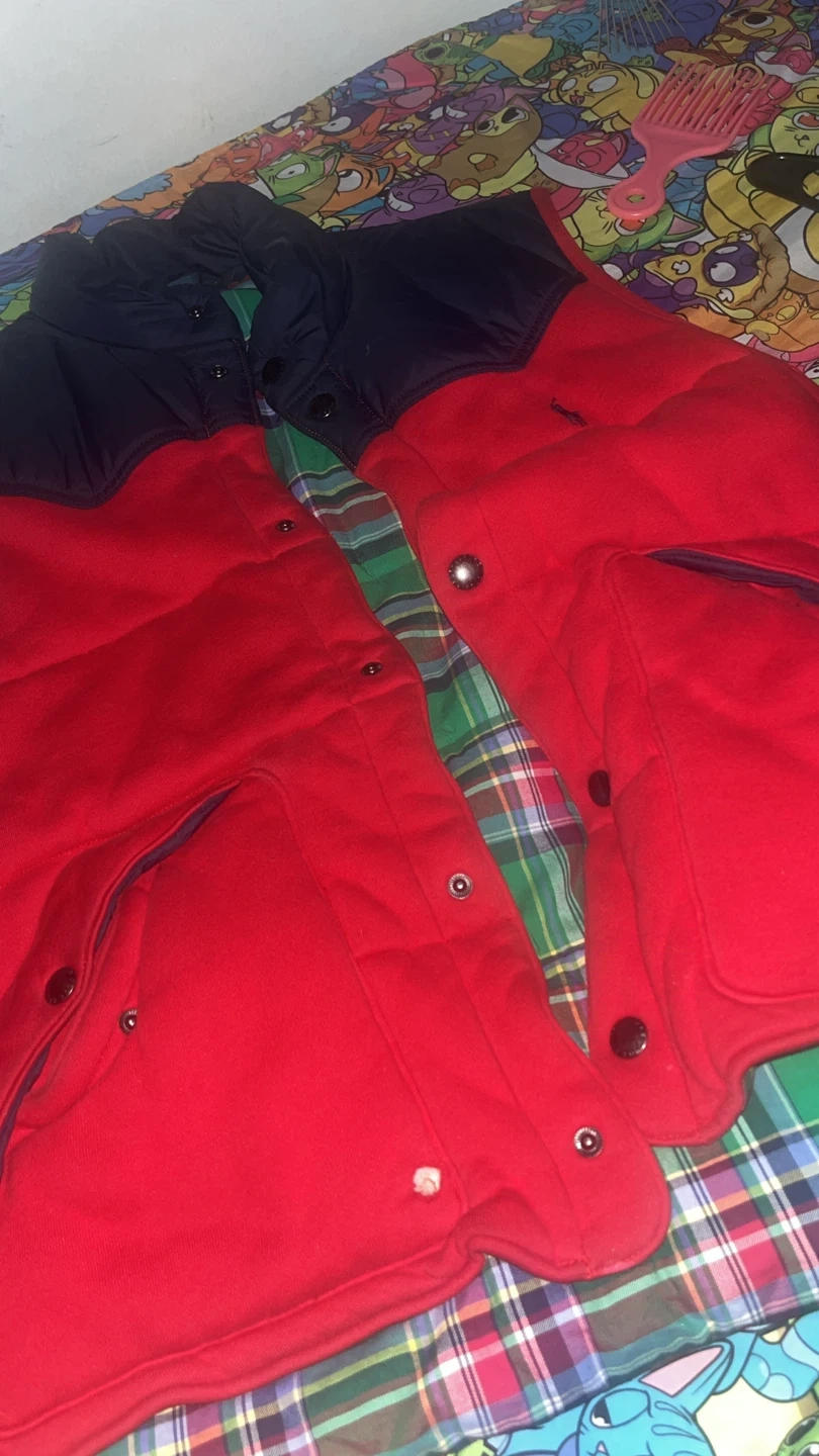 Selling a Polo by Ralph Lauren vest in size L! The body is made of 83% cotton and 17% polyester, with a 100% cotton lining. It's a stylish piece!