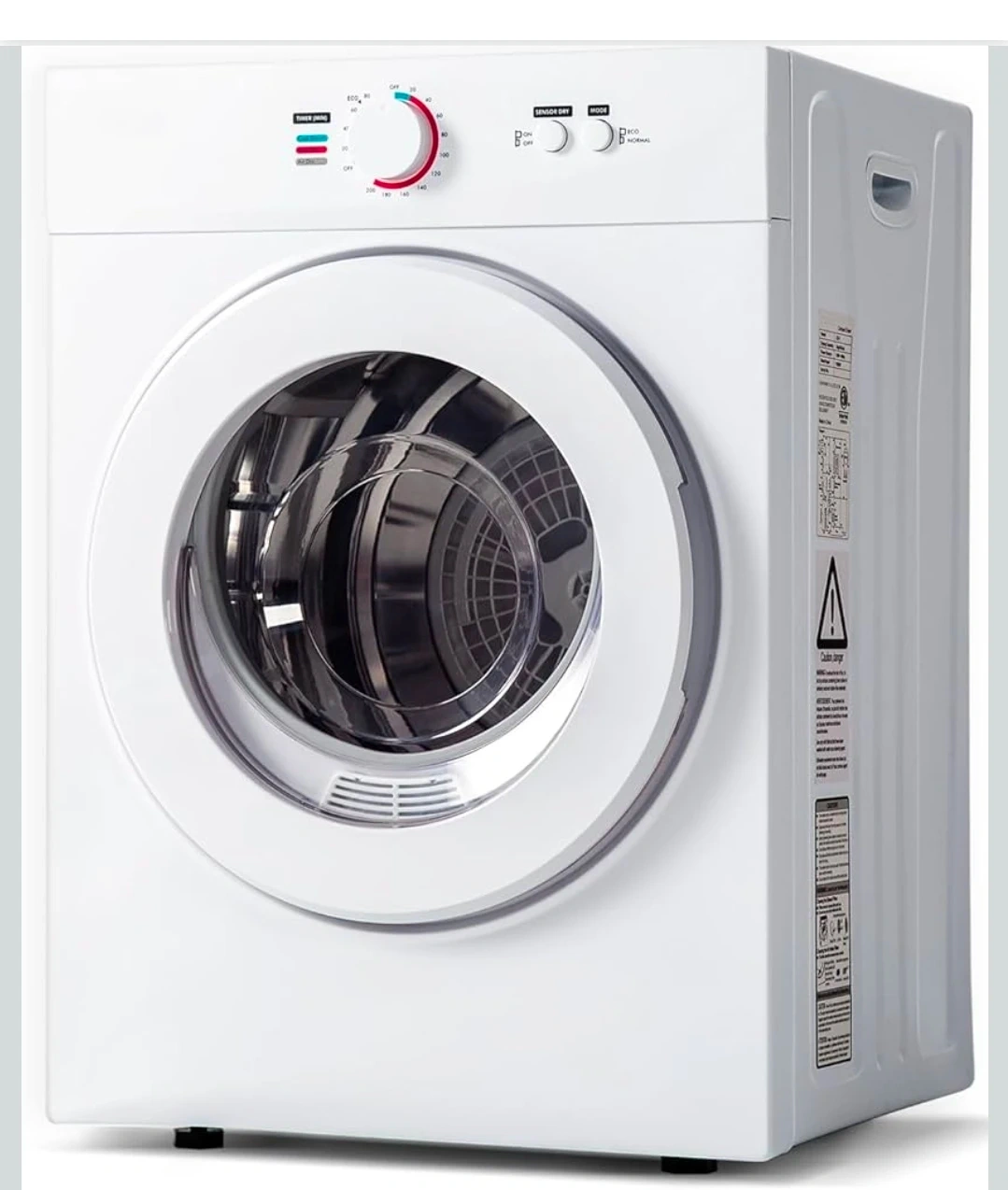 Here's a compact clothes dryer, perfect for smaller spaces! It's in great condition and ready to use. The dryer is white and features simple controls for timer and mode selection.