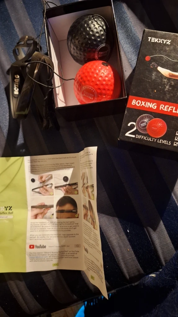 Selling a Tekkyyz Boxing Reflex Ball set! It comes with two difficulty levels: softer, lighter, and safer balls to help improve your reflexes and hand-eye coordination. The box is included, along with the necessary components to get you started. Great for a fun workout!