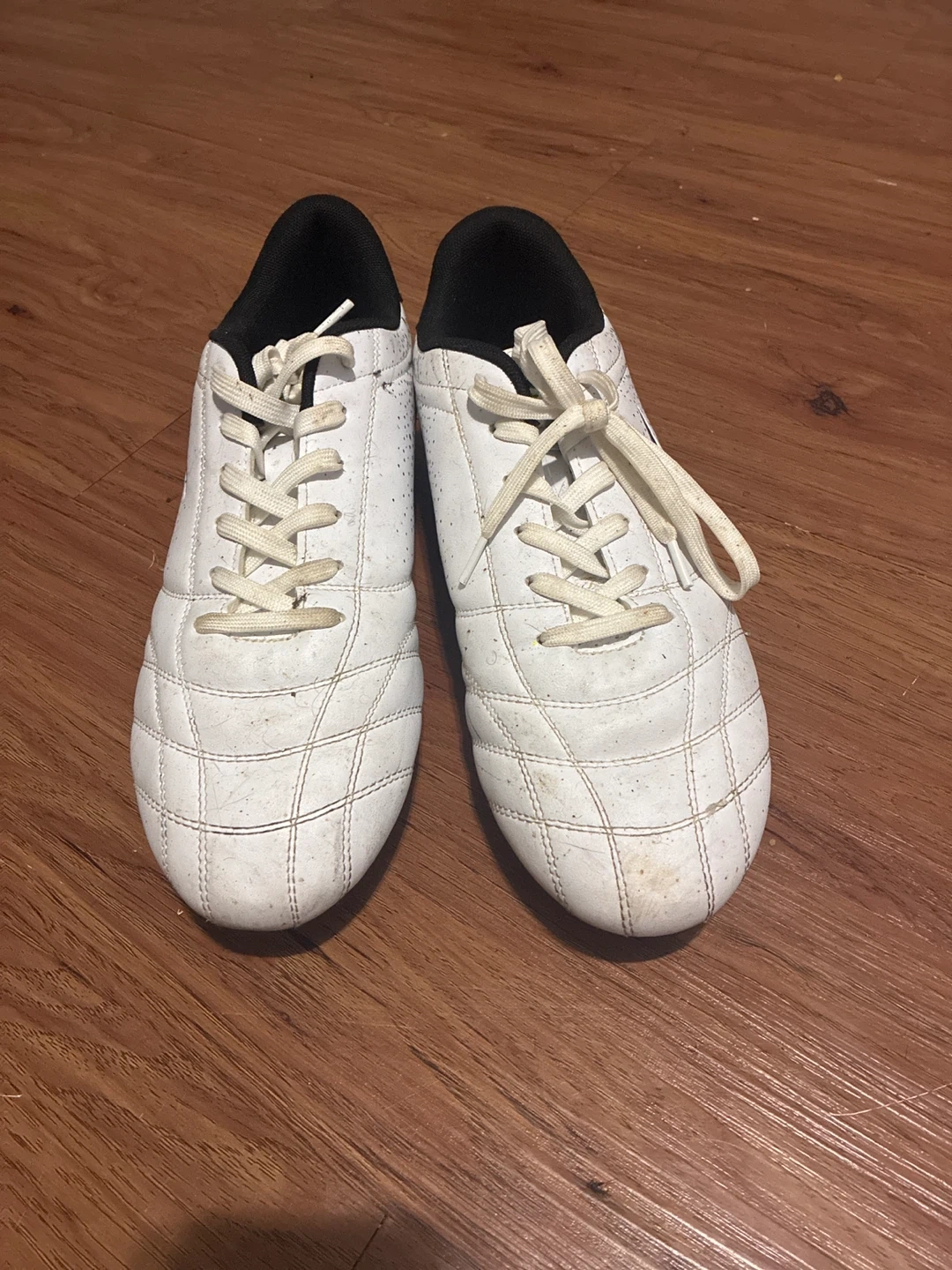 Selling a pair of white soccer cleats. They show some signs of use, but are still in good condition for playing. Please check the photos for details