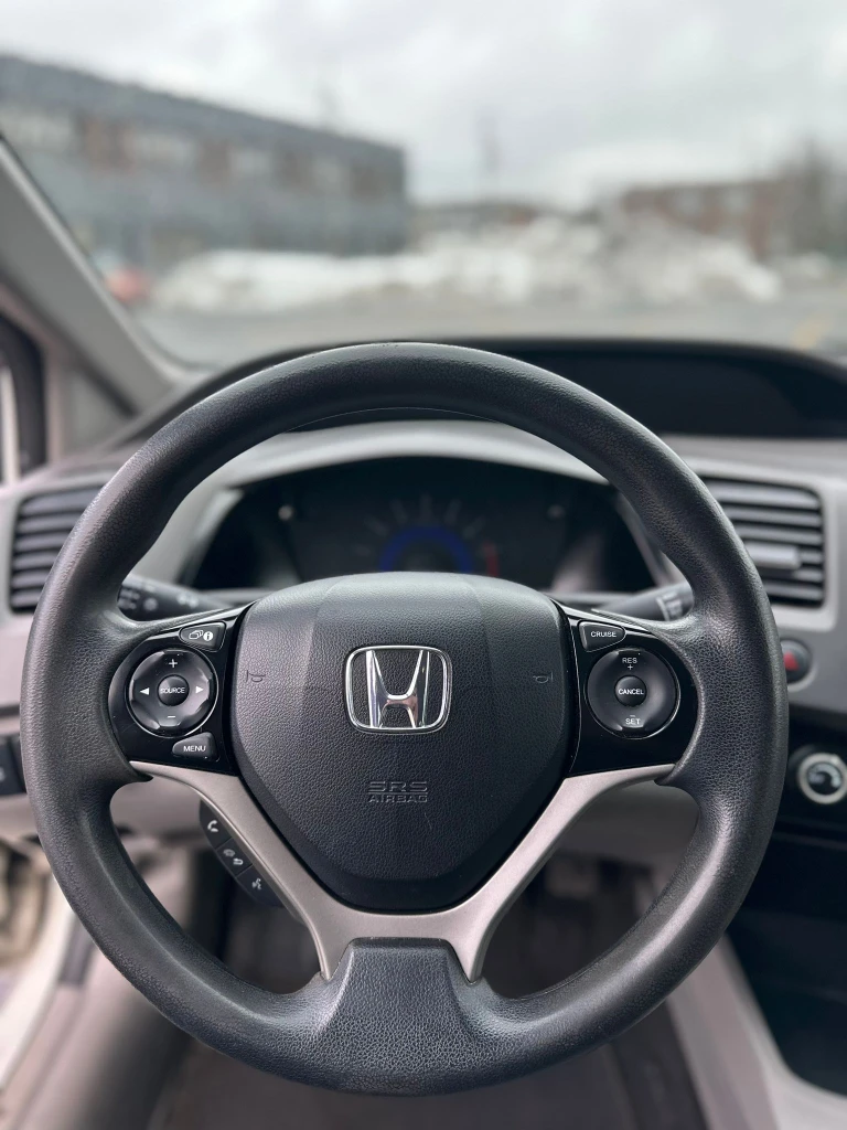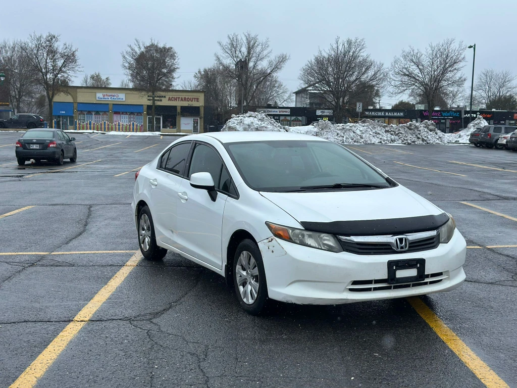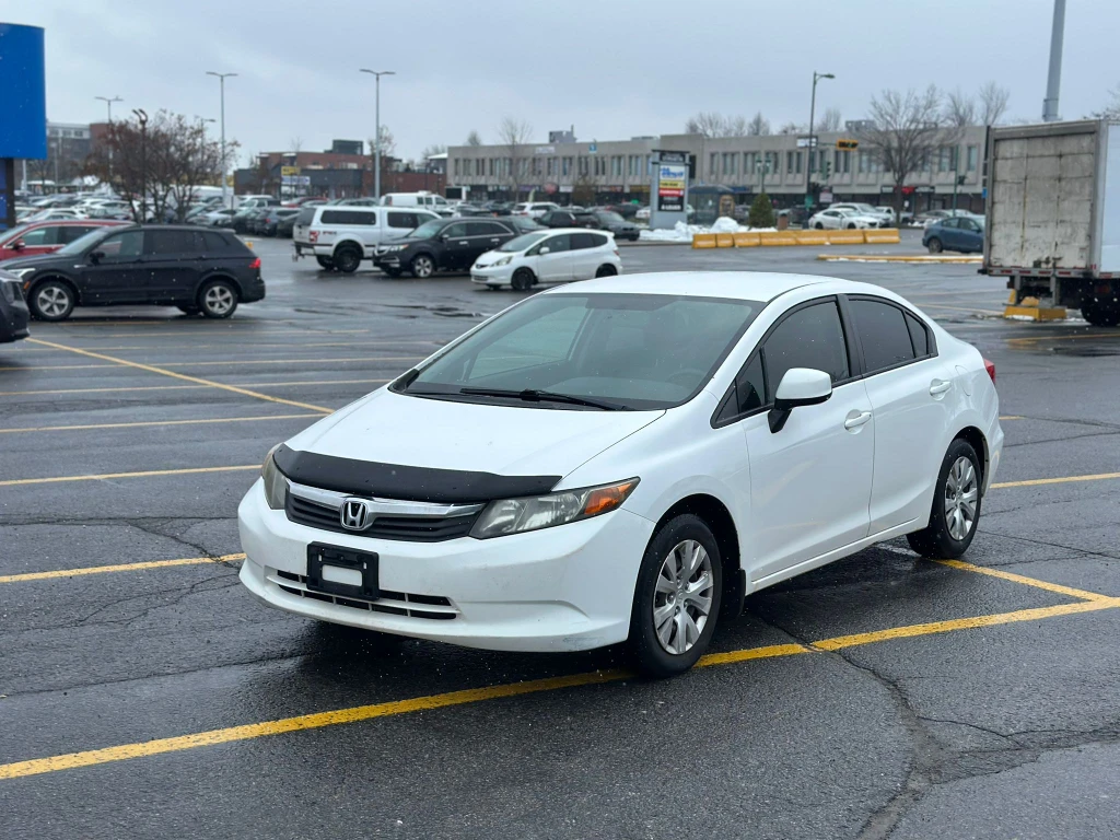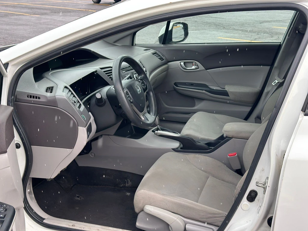 Selling a white Honda Civic sedan. It has some wear and tear, as shown in the pictures. Perfect for getting around town! The milage is 330 but on the screen it says 214 and it's 2012