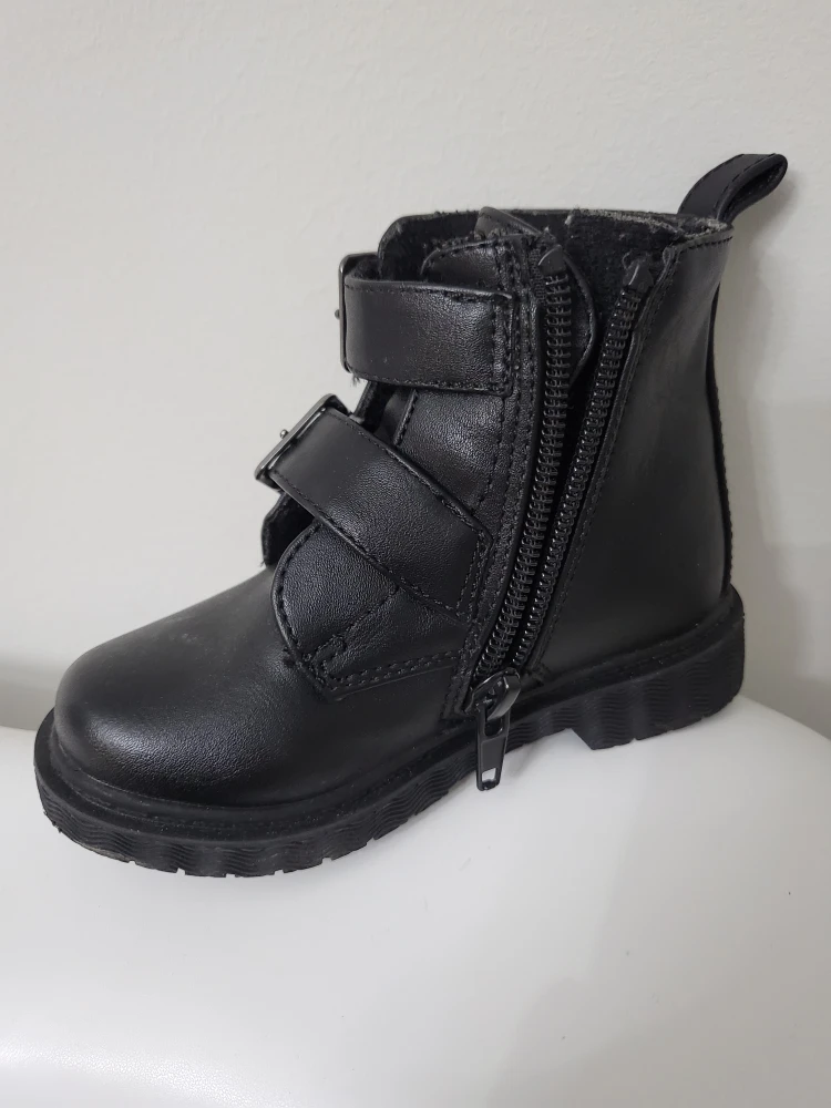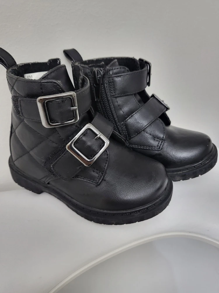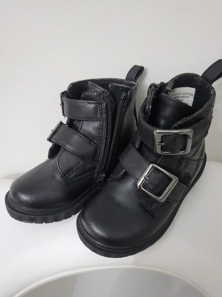 Selling a pair of Rachel Shoes Lil Agatha boots in size 6M. They're in good condition and feature a stylish design with buckle straps and a side zipper for easy wear. Perfect for your little one!